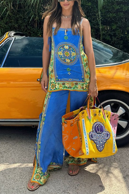 Completo Nara – Top mit seitlichen Schnürungen & bedruckte Palazzo-Hosen