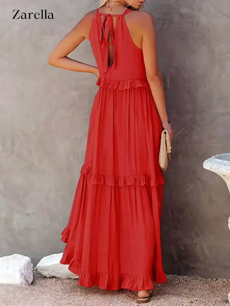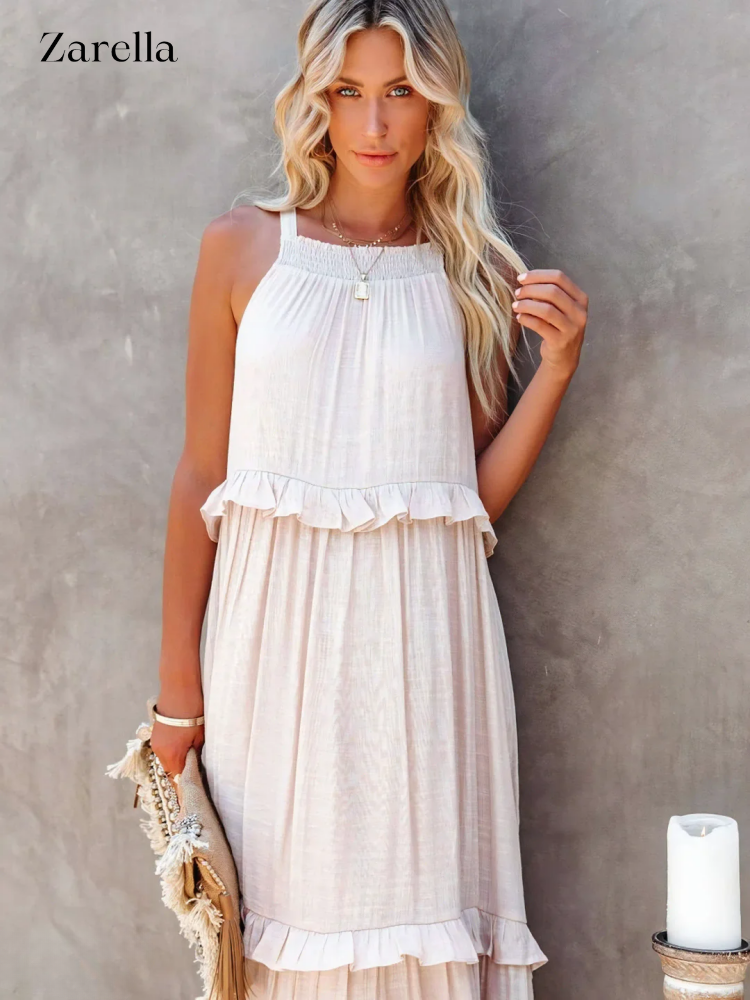 ✔️ Bohème-Charme: Die charmanten Rüschen, der Neckholder-Ausschnitt und die plissierten Falten verleihen Ihrem Look einen Hauch von Bohème-Flair - perfekt für jede Gelegenheit. Ob am Pool oder auf einer Gartenparty, unser Kleid strahlt mühelosen Schick aus.