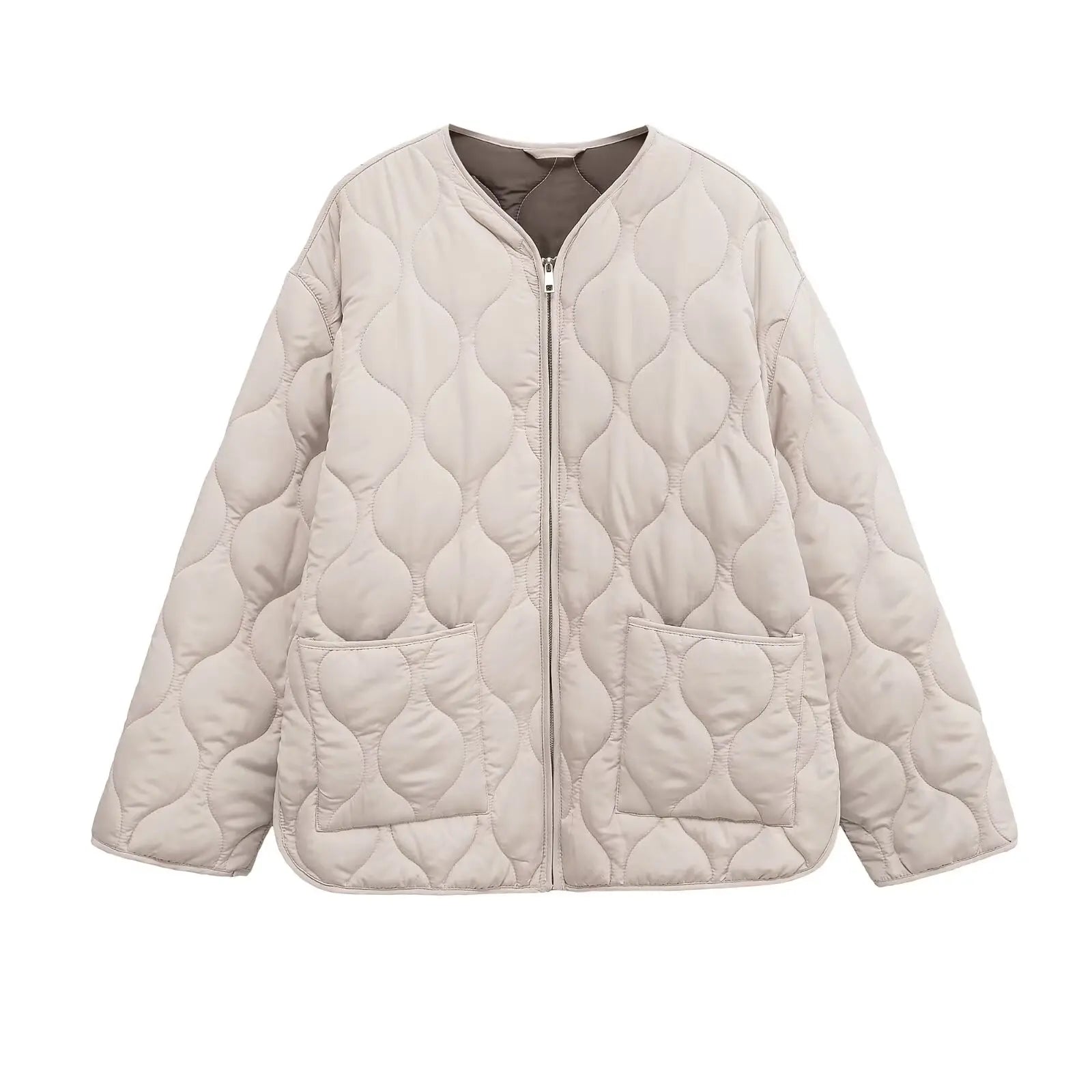 Bewältige kalte Tage mit Leichtigkeit in diesem leichten gepolsterten Layer, der alltägliche Funktionalität mit einem unverwechselbaren Stil kombiniert. Die oversized Silhouette bietet eine entspannte Eleganz, während die großen Taschen praktische Nützlichkeit mit modernem Charme vereinen. Hergestellt aus einem weichen und gemütlichen Stoff, hält sie dich warm, ohne zusätzliches Volumen hinzuzufügen. Ob du zu einem Brunch gehst oder shoppen gehst, diese Jacke vervollständigt deinen Look mit einem Hauch von natürlicher Eleganz.