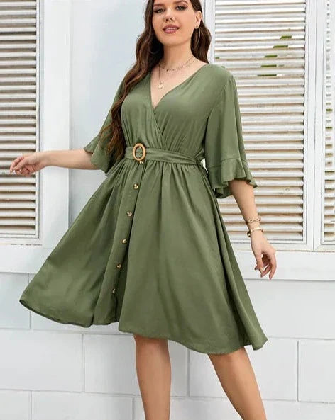 Herzlich Willkommen in der Welt der Sanftheit von Heidi-Mode - Lässiges Midi Kleid mit Bindegürtel in Plus Size