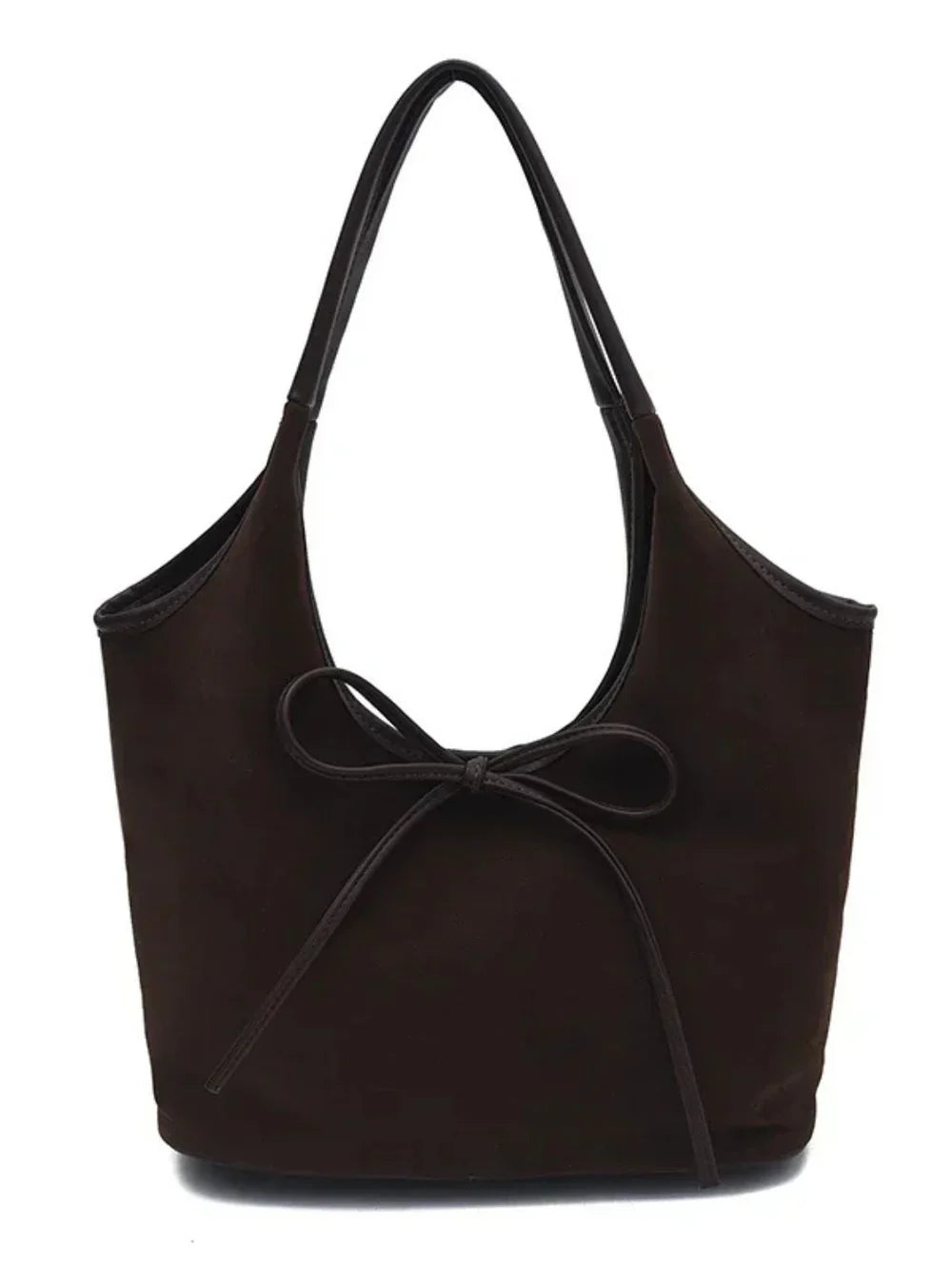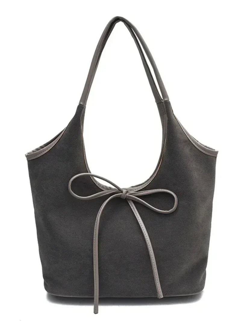 Die Merve Tasche kombiniert zwei luxuriöse Materialien: veganes Wildleder und veganes Leder, was einen raffinierten Look schafft. Das charmante Detail verleiht der Tasche einen verspielten Touch, während das geräumige Innenleben und der Magnetverschluss praktische Vorteile bieten. Ob Sie ins Büro gehen, ein Kaffeetreffen haben oder eine Shoppingtour machen, diese Tasche ist für jede Gelegenheit perfekt.