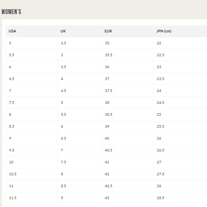 EU-Größe | UK-Größe | US-Größe | Fußlänge (cm) |