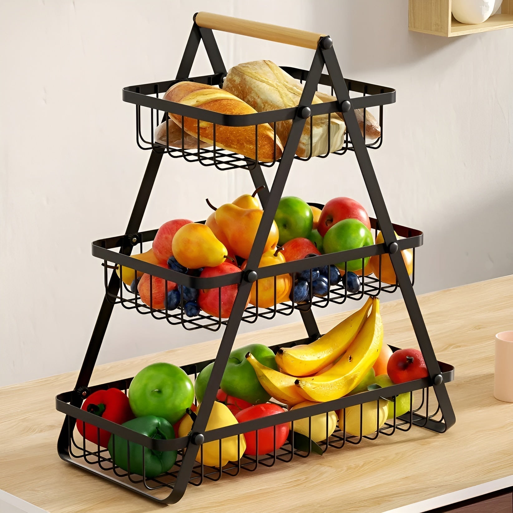 3-stöckiger Obstkorb aus Metall – Platzsparend und Dekorativ | Ideal für Küche & Esstisch