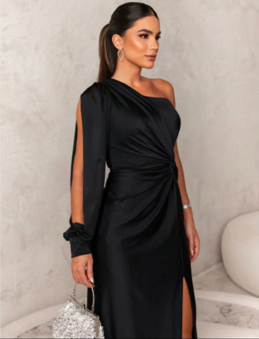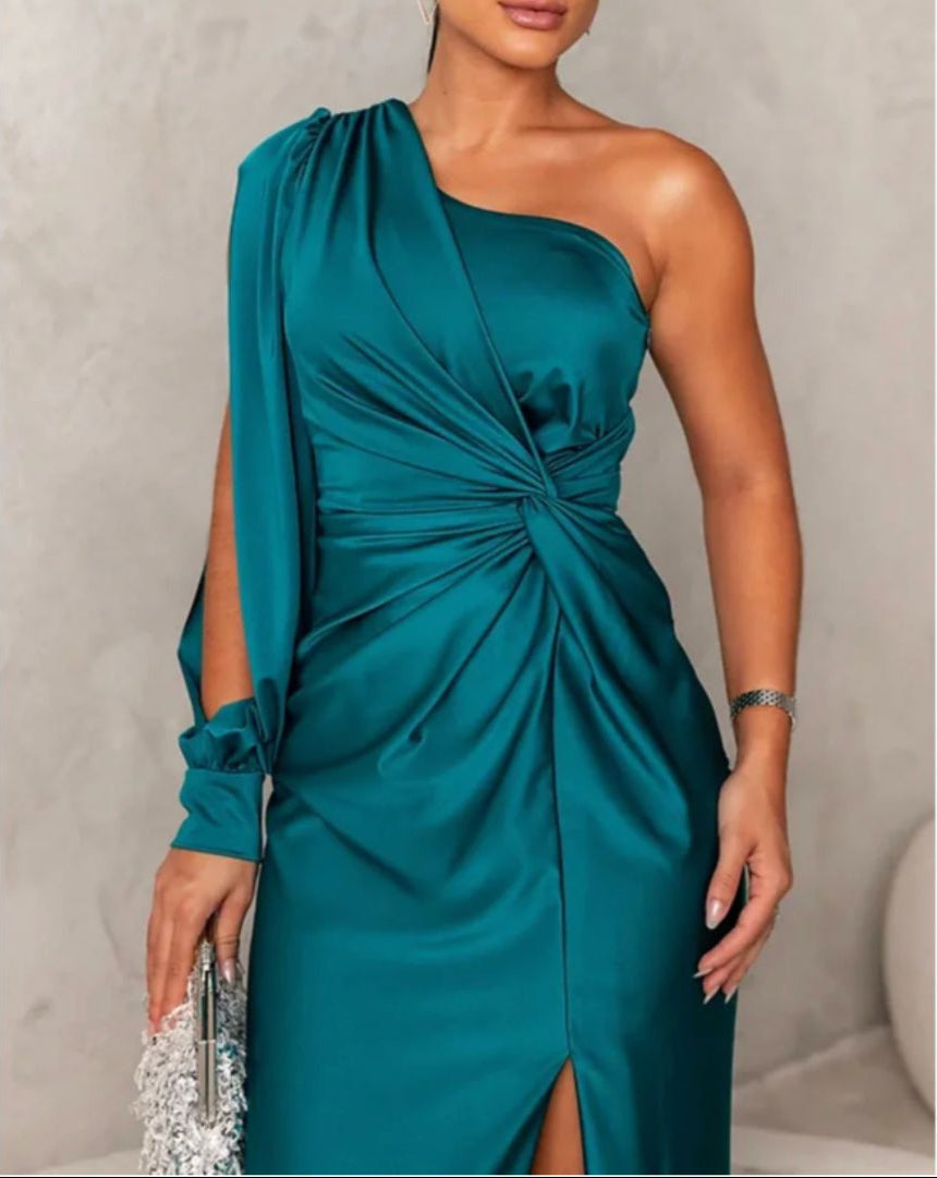 Dieses Abendkleid für Damen ist gemacht für unvergessliche Sommerabende und festliche Anlässe, bei denen du glänzen möchtest. Das One-Shoulder-Design sorgt für einen edlen, femininen Look, der sofort ins Auge fällt – perfekt für moderne Hochzeitsgäste.