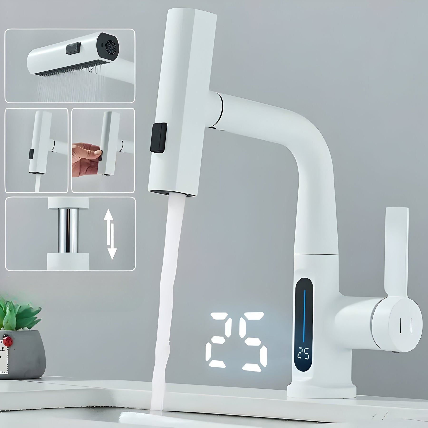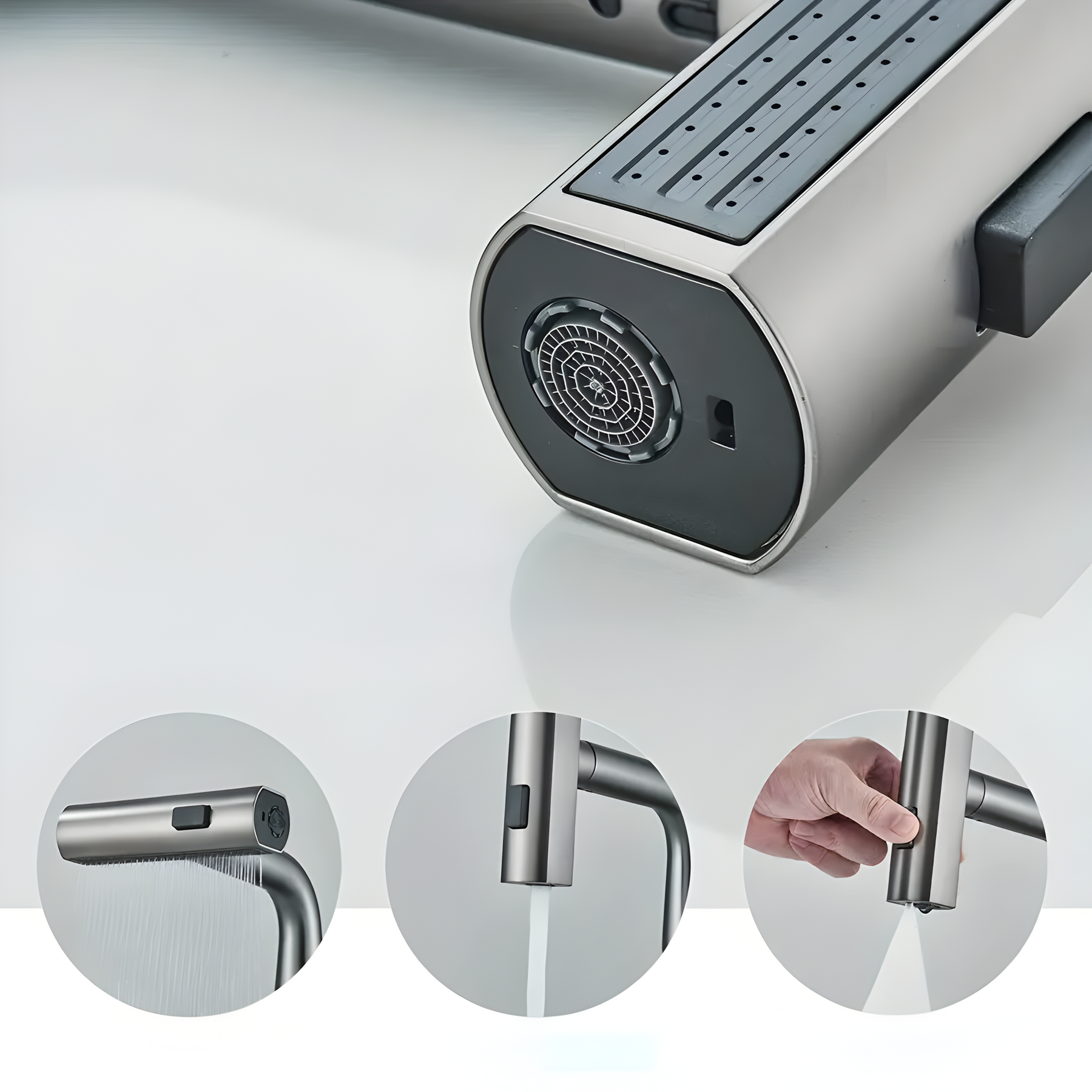 Der AquaForge Wasserhahn ist mehr als nur ein Küchen- oder Badezimmeraccessoire – er ist ein durchdachtes Multifunktionstalent, das Design und Komfort auf ein neues Level hebt. Mit seiner dreistufigen Wasserausgabe, einer ausziehbaren Brause und einem robusten Edelstahl-Finish in Gun Grey, wird jedes Waschbecken zum stilvollen Mittelpunkt. Ob für die Küche oder das Badezimmer – dieser Wasserhahn überzeugt durch Leistung, Vielseitigkeit und ein hochwertiges Erscheinungsbild.