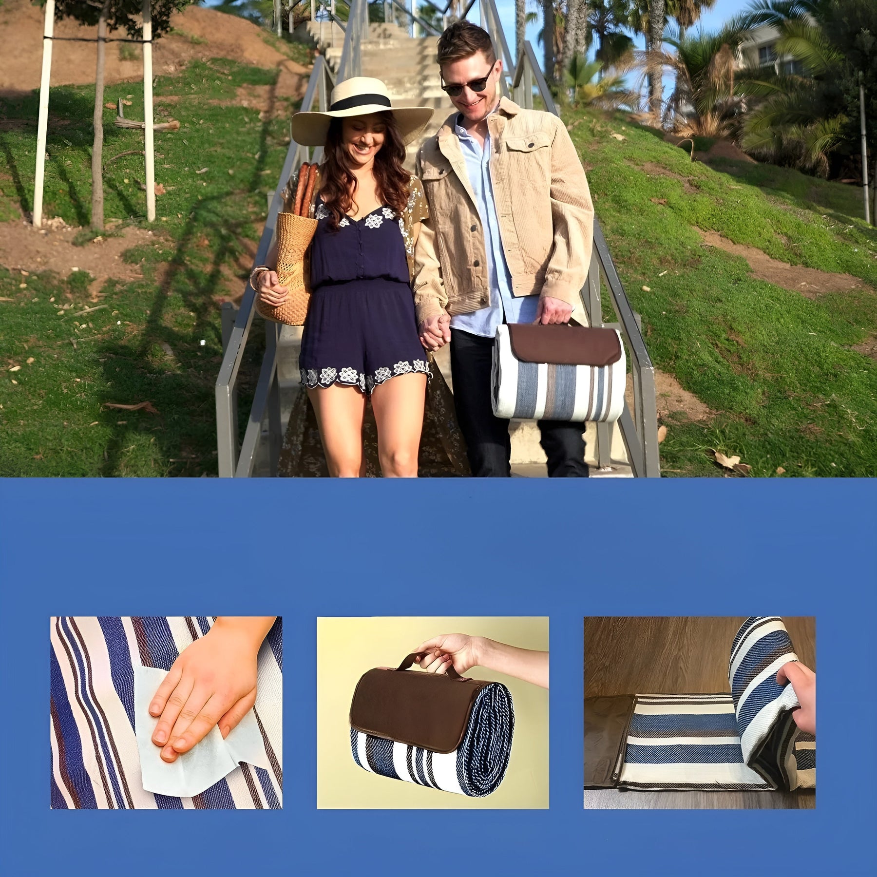 Unsere Premium Picknickdecke ist der ideale Begleiter für gemütliche Stunden im Grünen, am Strand oder beim Camping. Dank ihrer extra großen Abmessungen genießt du höchsten Komfort – ganz ohne nasse Füße oder Sand überall. Durch das praktische Roll-up-Design lässt sie sich super kompakt zusammenpacken und überallhin mitnehmen.