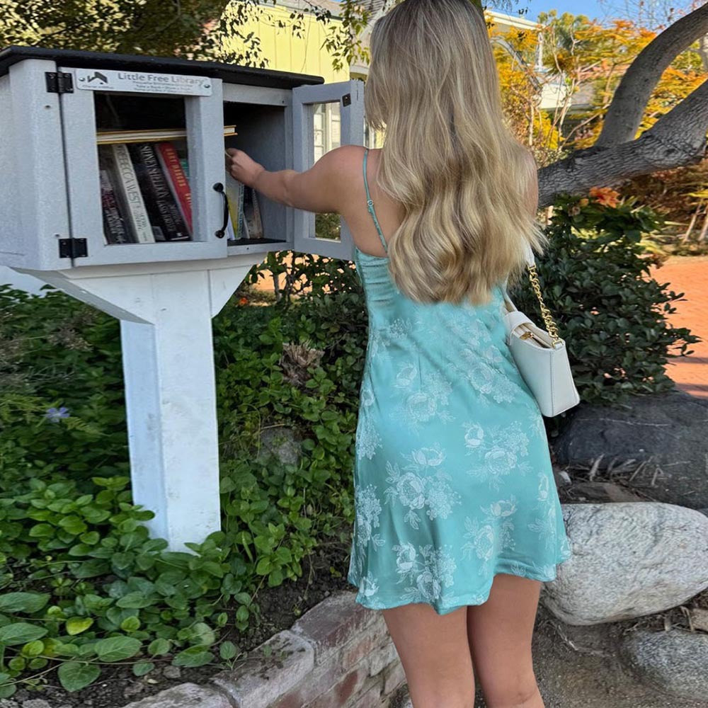 Umfassen Sie die mühelose Eleganz mit diesem Damen Mini Kleid aus satinartigem Stoff. Das Kleid besticht durch seinen Slim Fit und die zarten Spaghetti-Träger, die eine schmeichelhafte Silhouette kreieren. Das wunderschöne Blumenmuster verleiht dem Kleid einen frischen und femininen Look, ideal für warme Wetterausflüge und besondere Anlässe.