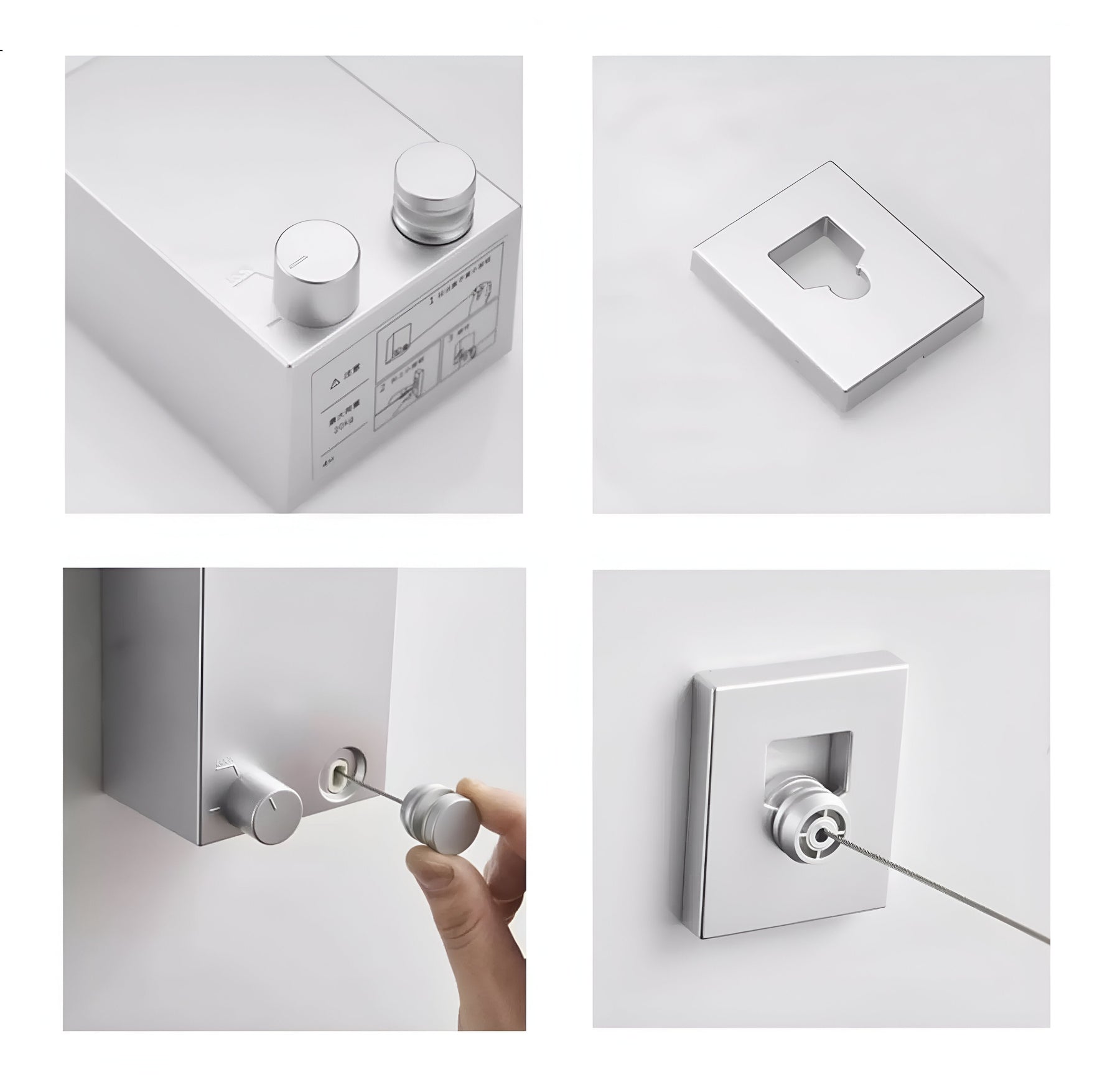 BreezeHold besteht aus hochwertigem ABS-Kunststoff mit einer widerstandsfähigen Leine, die nicht rostet, nicht durchhängt und pflegeleicht ist. Die automatische Rückzugsfunktion sorgt für Ordnung in Sekundenschnelle. Perfekt für den Innen- und Außenbereich, egal ob Bad, Balkon, Waschküche oder Garten. Durch die flexible Montage ist es für jede Wohnsituation geeignet – Mietwohnungen inklusive!