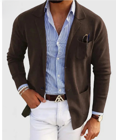 Vorstellung des lässigen Brunen Langarm mantel für Herren, bei dem zeitlose Eleganz auf moderne Vielseitigkeit trifft. Aus hochwertigen Stoffen gefertigt, definiert dieser mantel lässige Kultiviertheit neu und eignet sich daher perfekt für das berufliche Umfeld und legere Anlässe. Mit seinem raffinierten Kragen und dem klassischen Design ist der Brunen mantel Ihr Must-have, mit dem Sie mühelos jeden Look aufwerten können.
