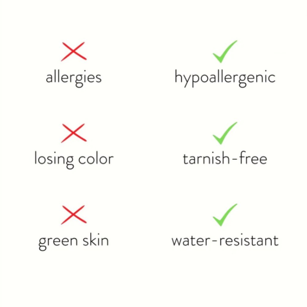 Hergestellt aus wasserdichtem Edelstahl, müssen Sie sich nie wieder um grüne Finger, verblassenden oder anlauffreien Schmuck sorgen.