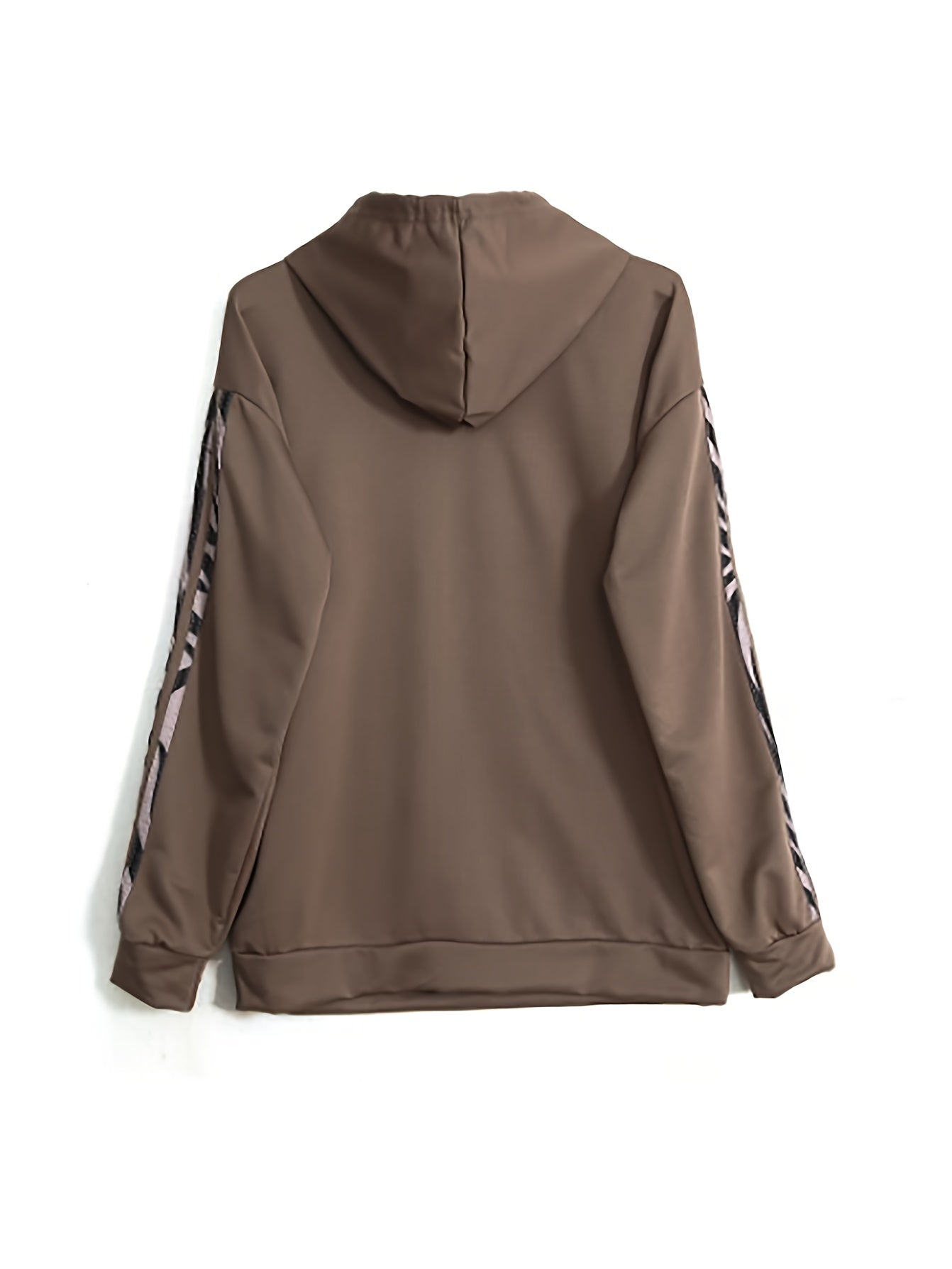 gestreepte casual tweedelige set met trekkoord en capuchon, drop-shoulder tops, lange losse broek set, dameskledingdetails 1