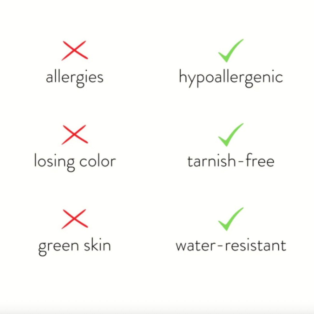 Hergestellt aus wasserdichtem Edelstahl, müssen Sie sich nie wieder um das Verblassen oder Anlaufen von Schmuck sorgen.