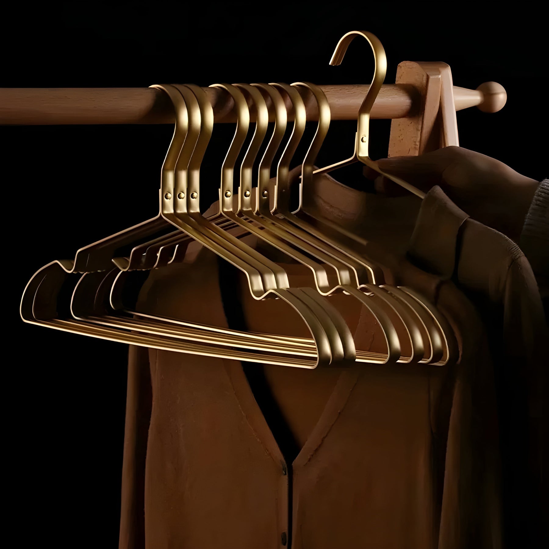 Mit seiner matten Oberfläche passt dieser Kleiderbügel zu jedem Raum. Es ist die ideale Wahl für moderne Wohnungen, die ein minimalistisches, aber elegantes Aussehen erfordern. -