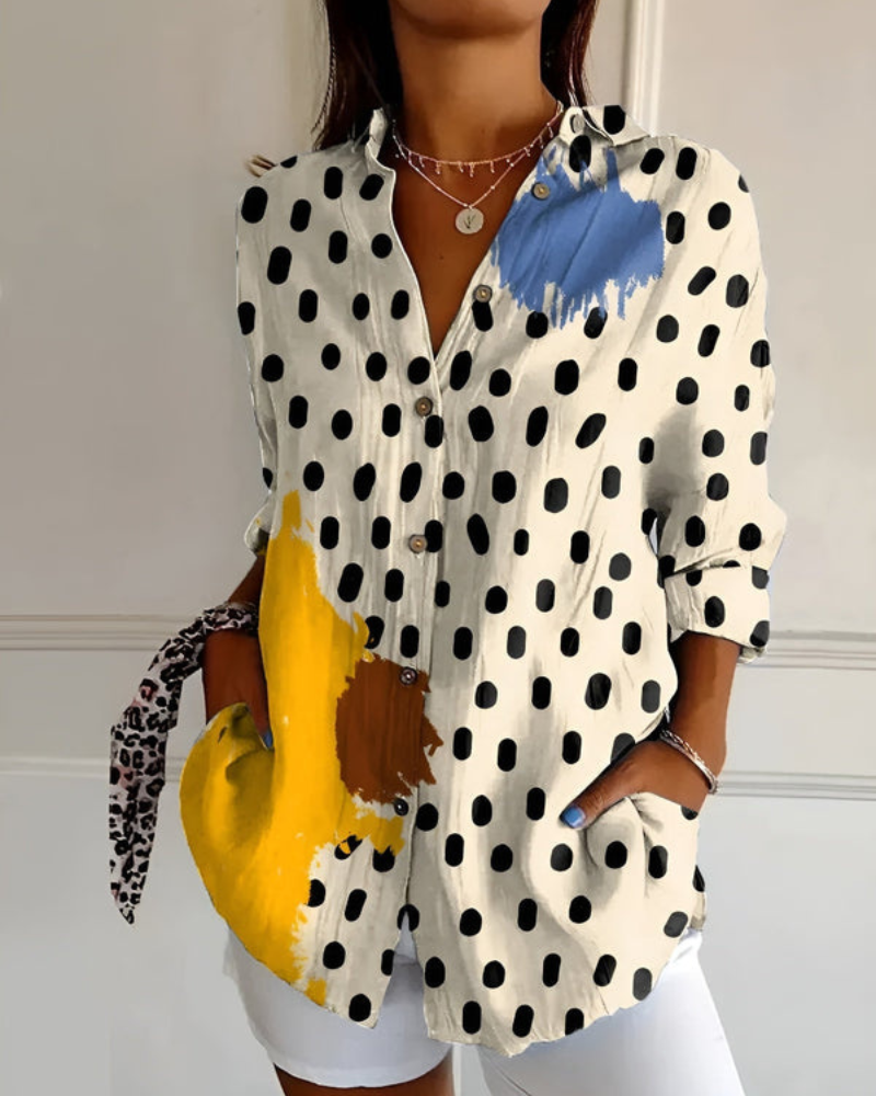 Damen Bluse mit V-Ausschnitt | Lockere Langarmbluse mit Knöpfen
