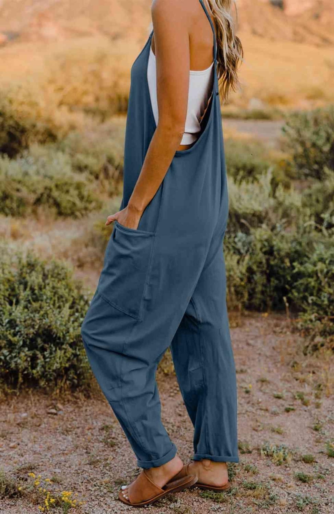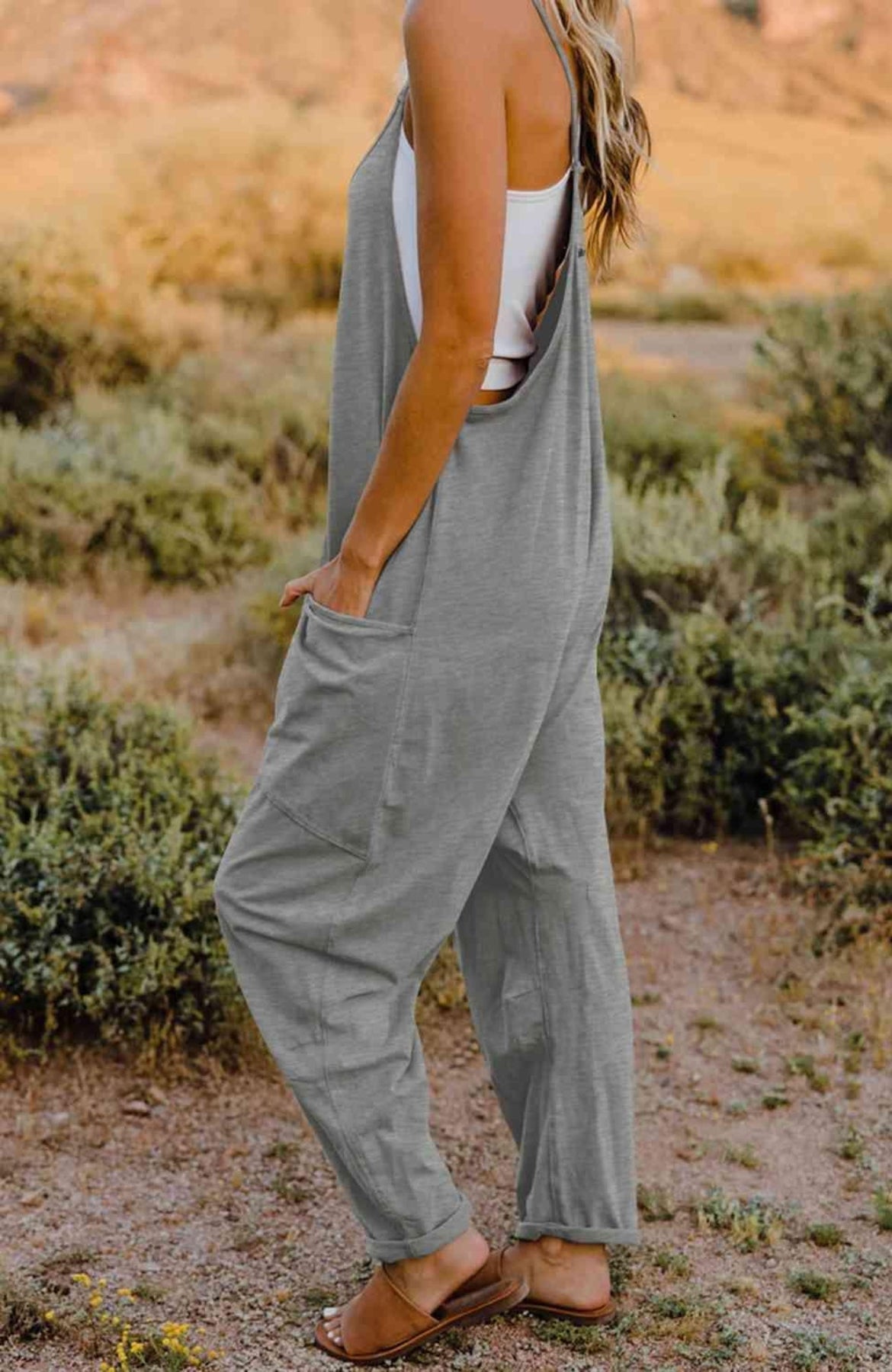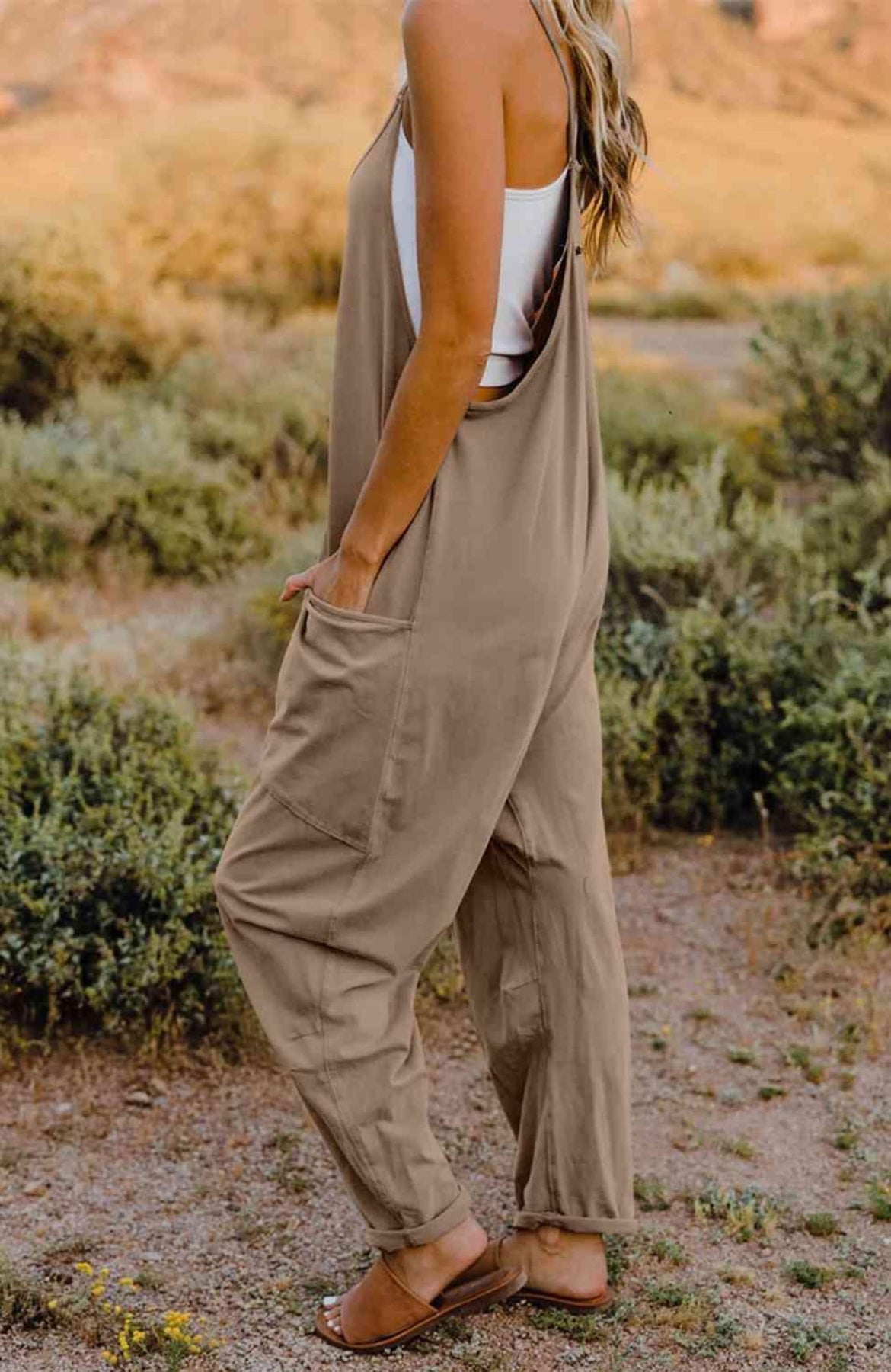 Dieses Einteiler bietet einen entspannten, lockeren Sitz mit tiefem Schritt und praktischen Seitentaschen für müheloses Tragen.