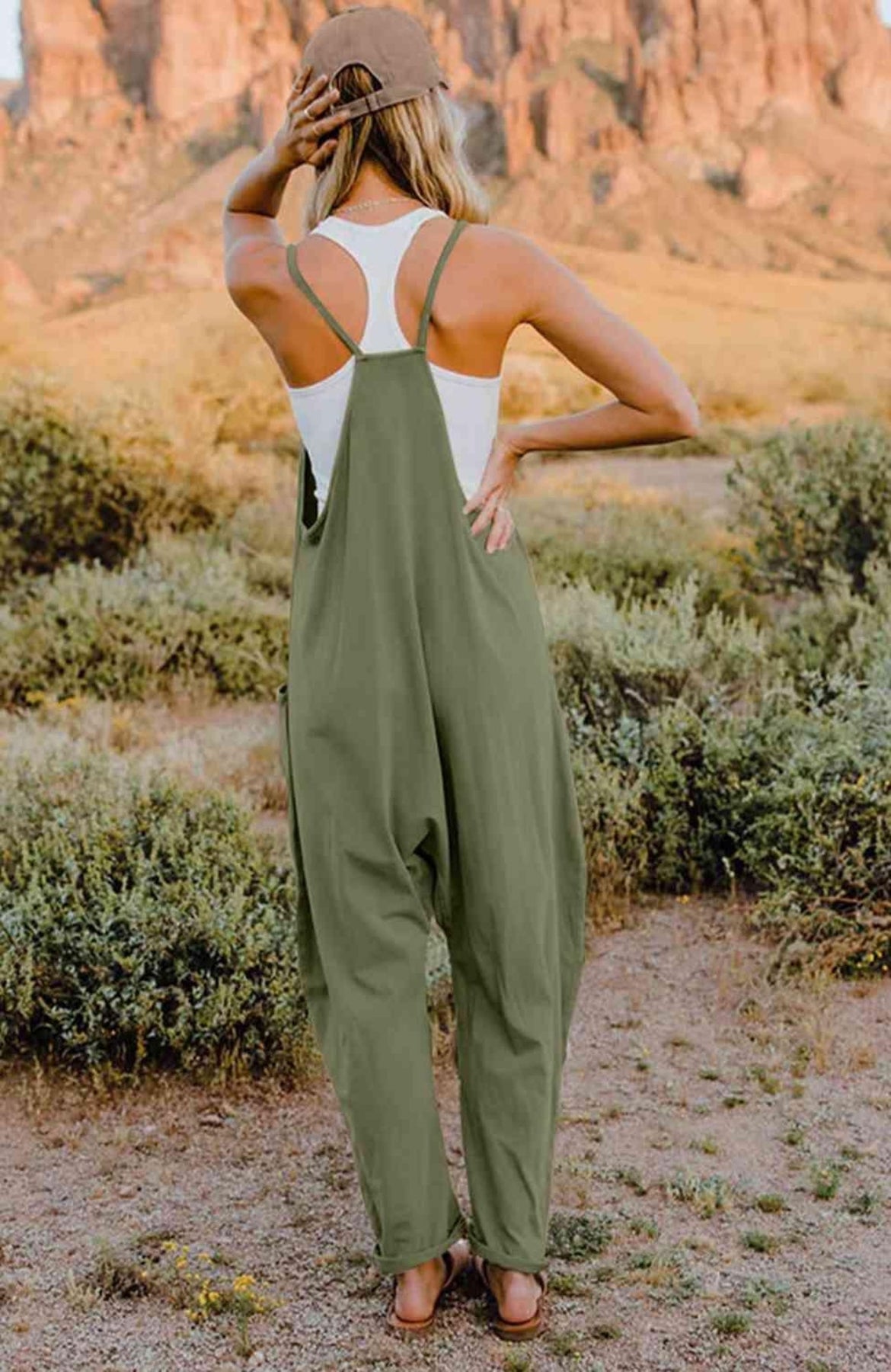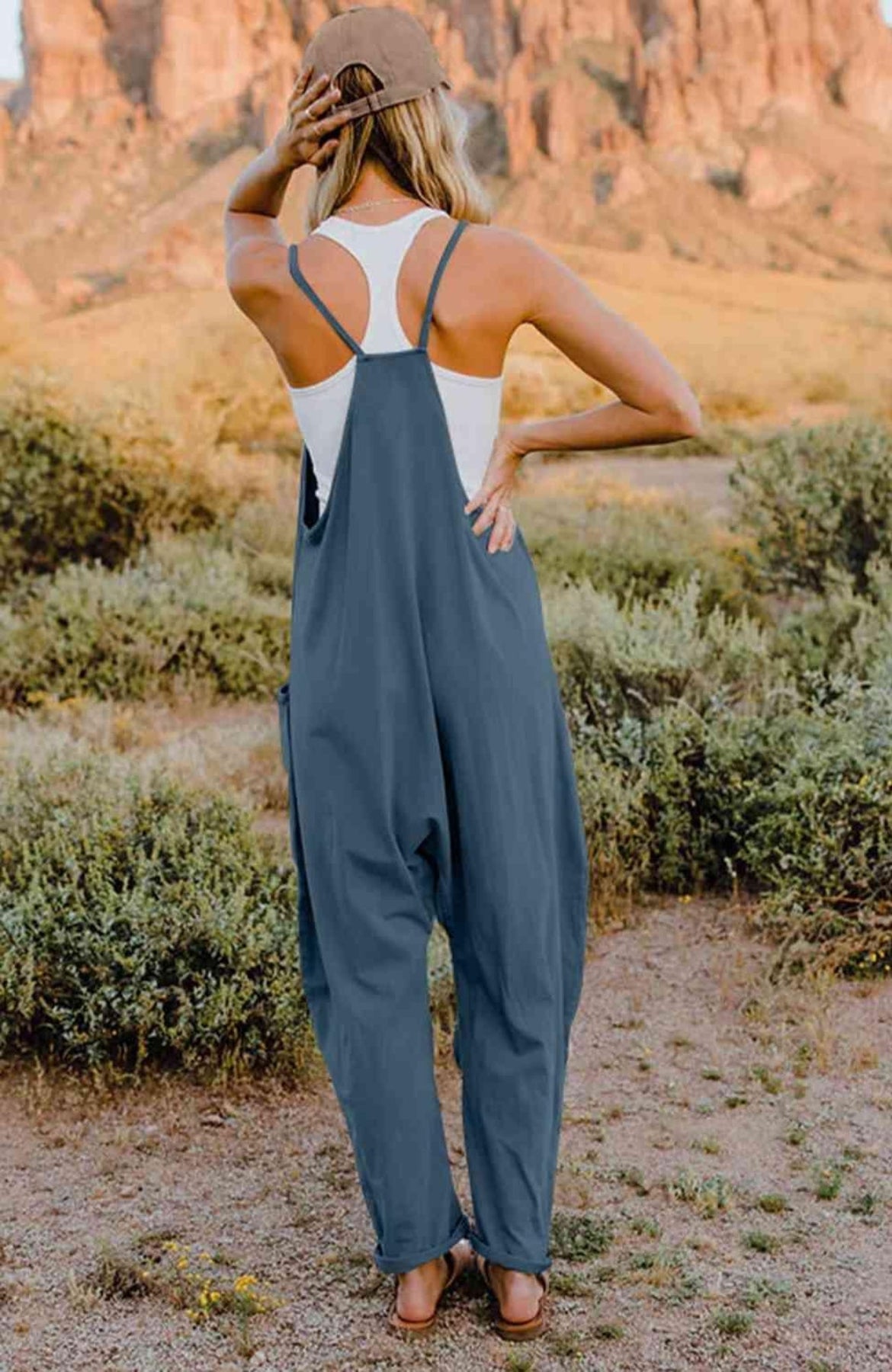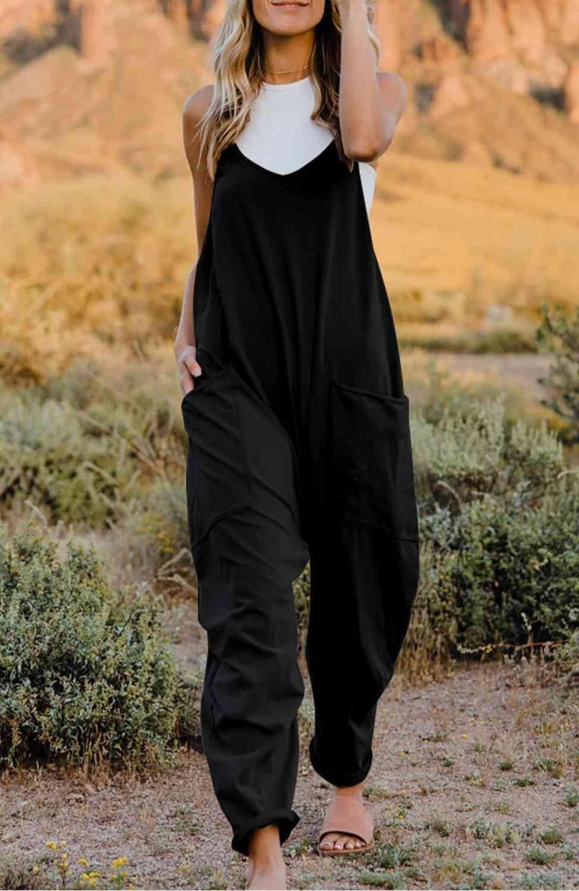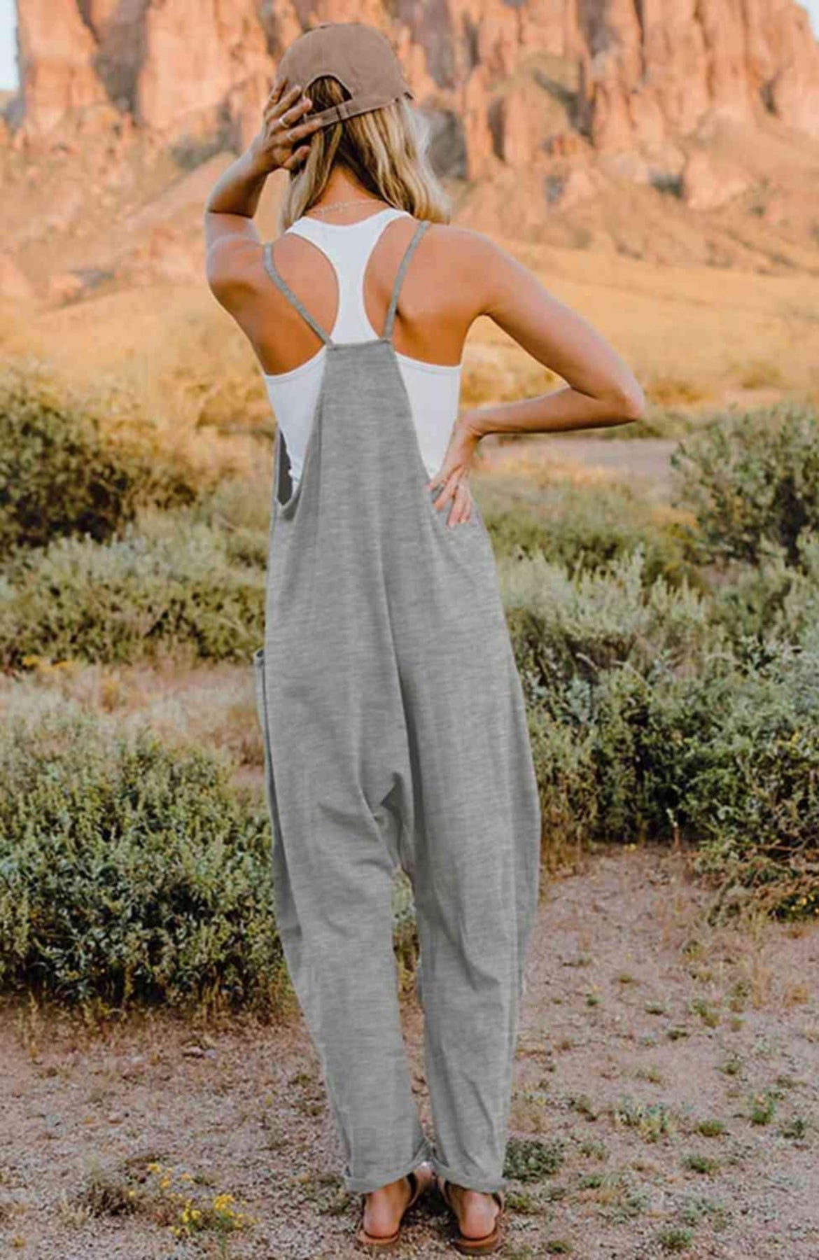 Dieses Einteiler bietet einen entspannten, lockeren Sitz mit tiefem Schritt und praktischen Seitentaschen für müheloses Tragen.