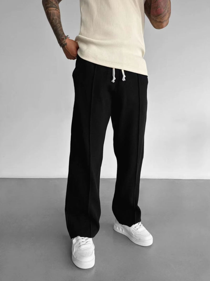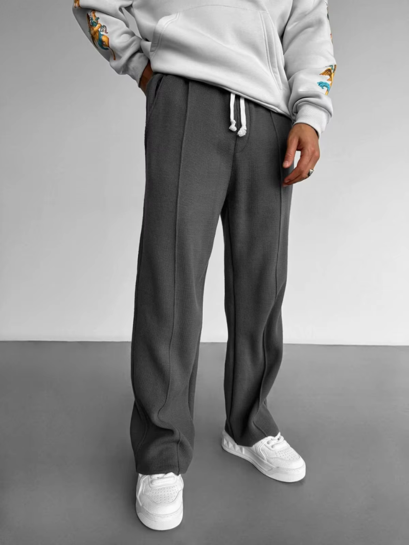 DORIAN bringt sportliche Lässigkeit und städtische Eleganz perfekt in Einklang. Der gerade geschnittene Jogginghose im strukturierten Waffeldesign ist ein echtes Style-Statement – dezent, komfortabel und vielseitig tragbar. Ob fürs Shopping, den Alltag oder ein Casual-Business-Meeting: Dieser Look funktioniert immer.