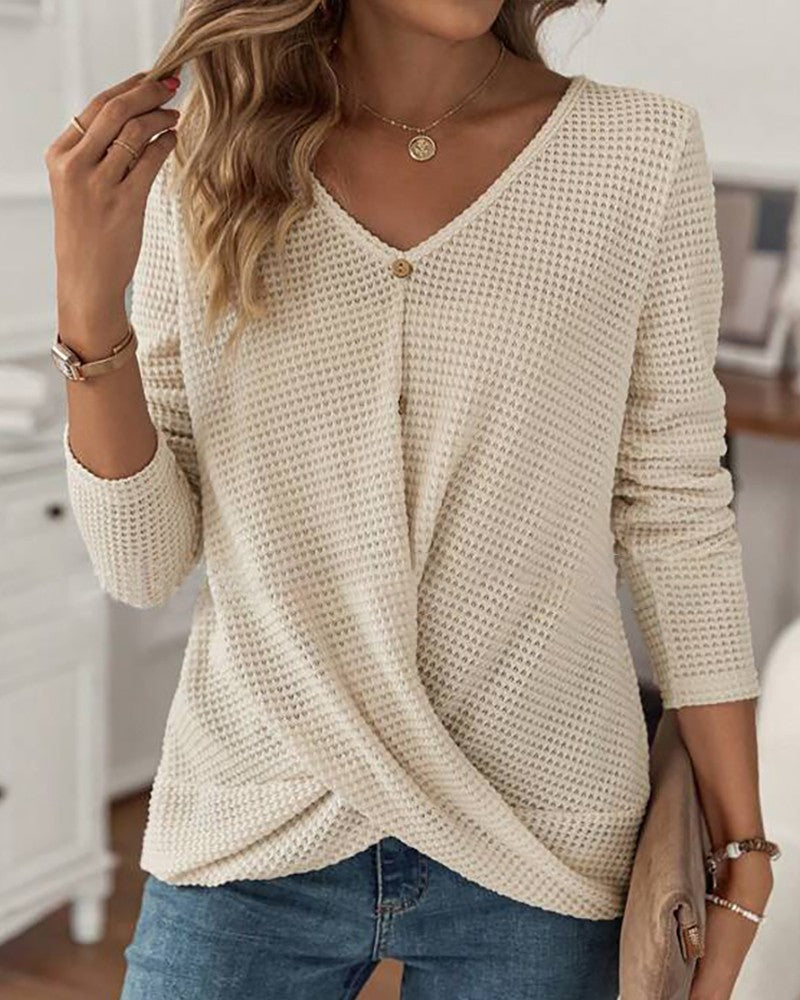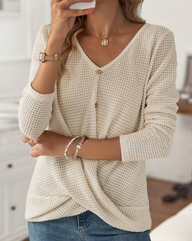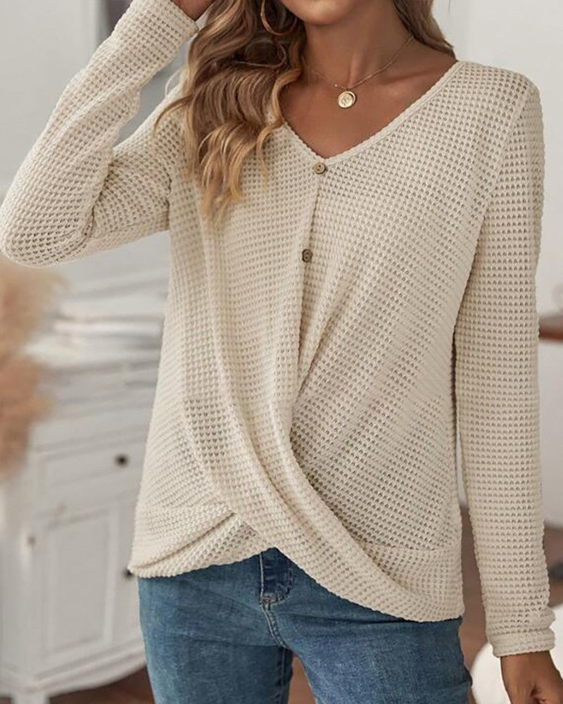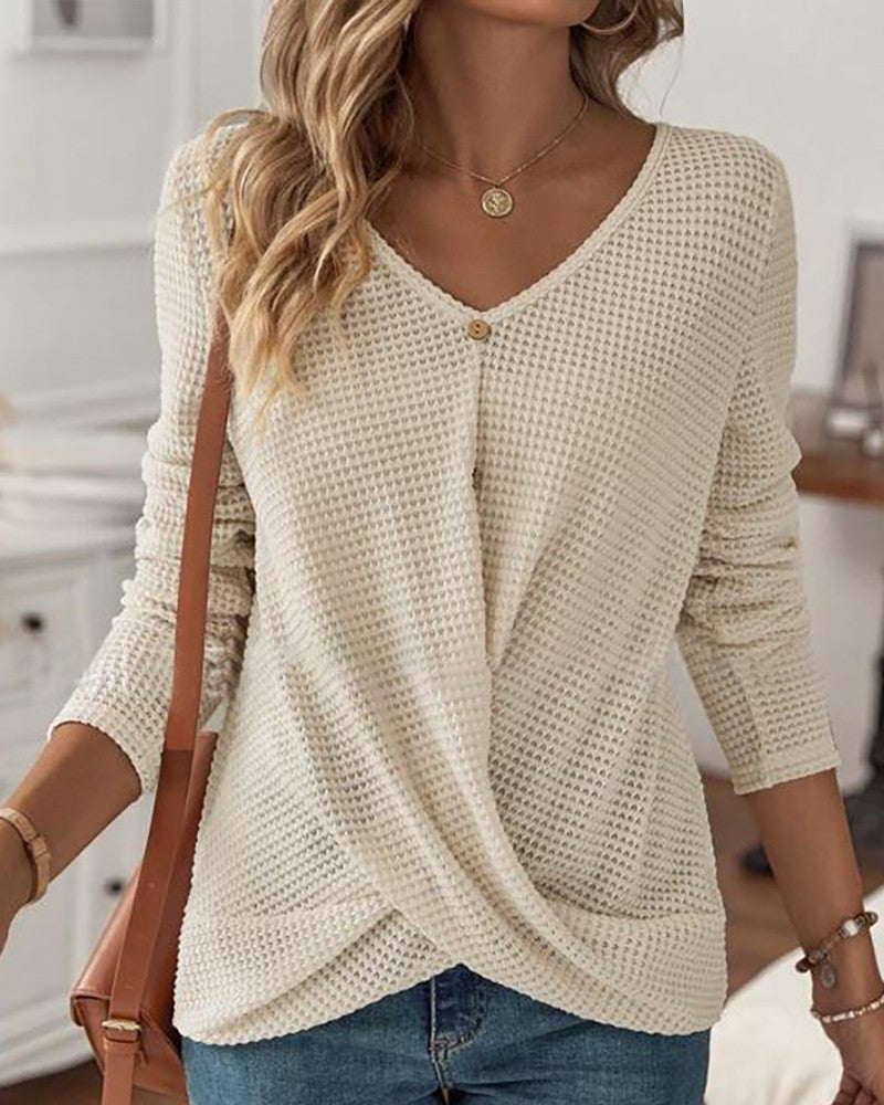 Strahlen Sie im Stil mit unserem wunderschönen Edna™ | V-Ausschnitt überlappenden lässigen Top mit Knöpfen!