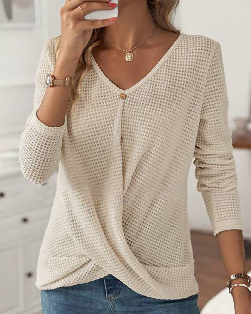 Edna™ | V-Ausschnitt überlappendes Freizeittop mit Knöpfen
