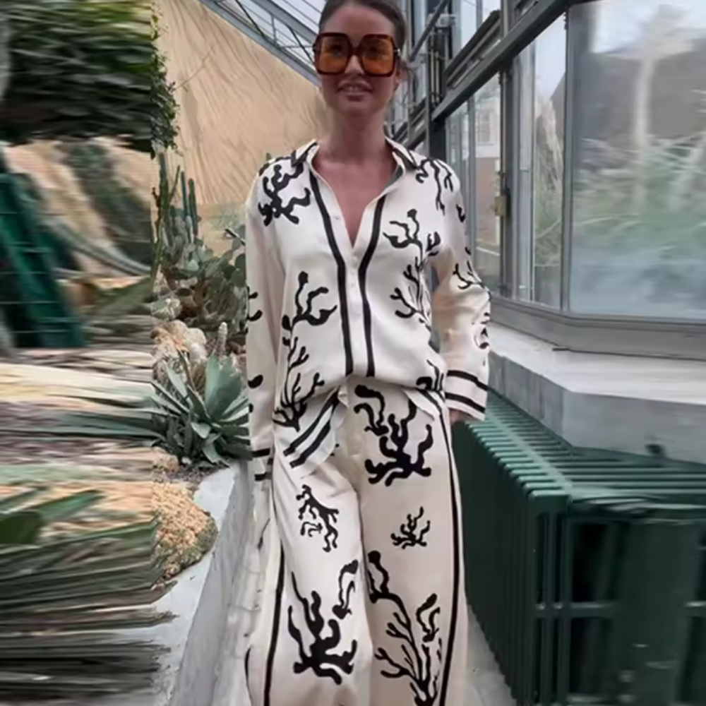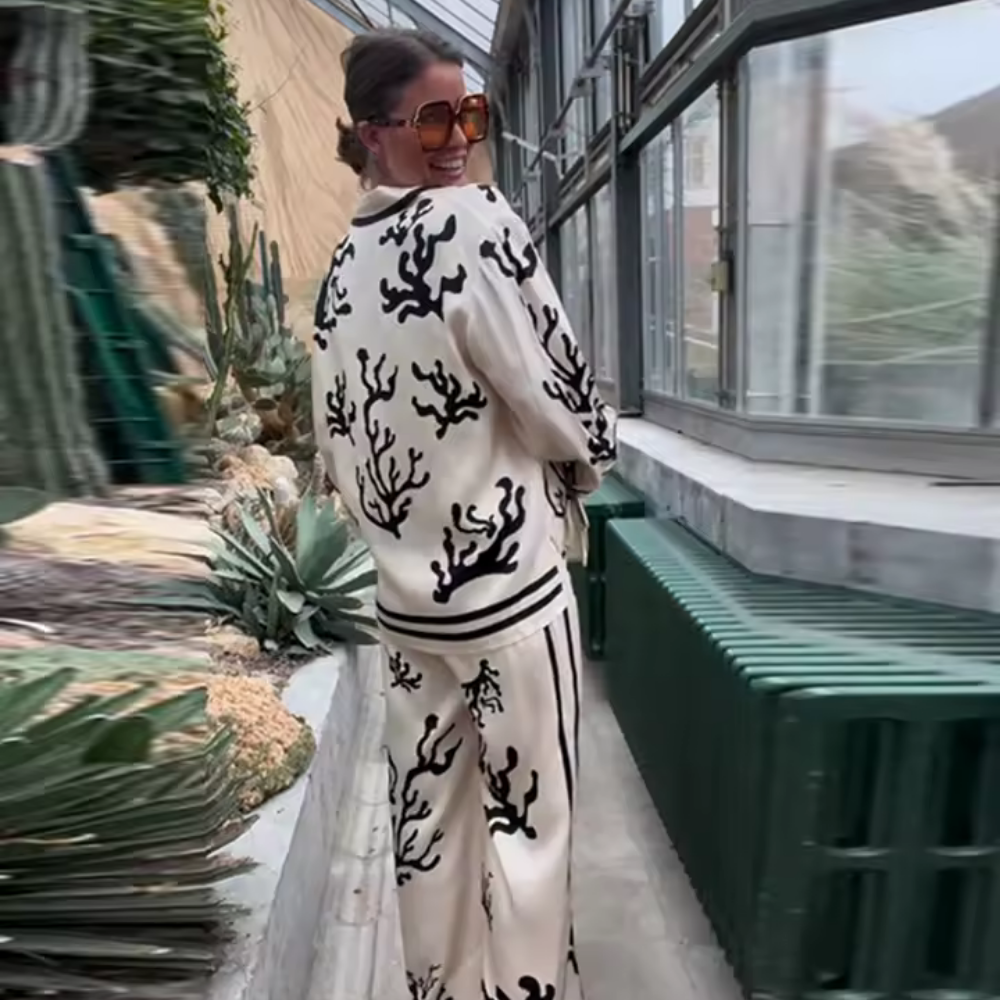 Elegantes Zweiteiler-Set mit abstraktem Print – Velorina