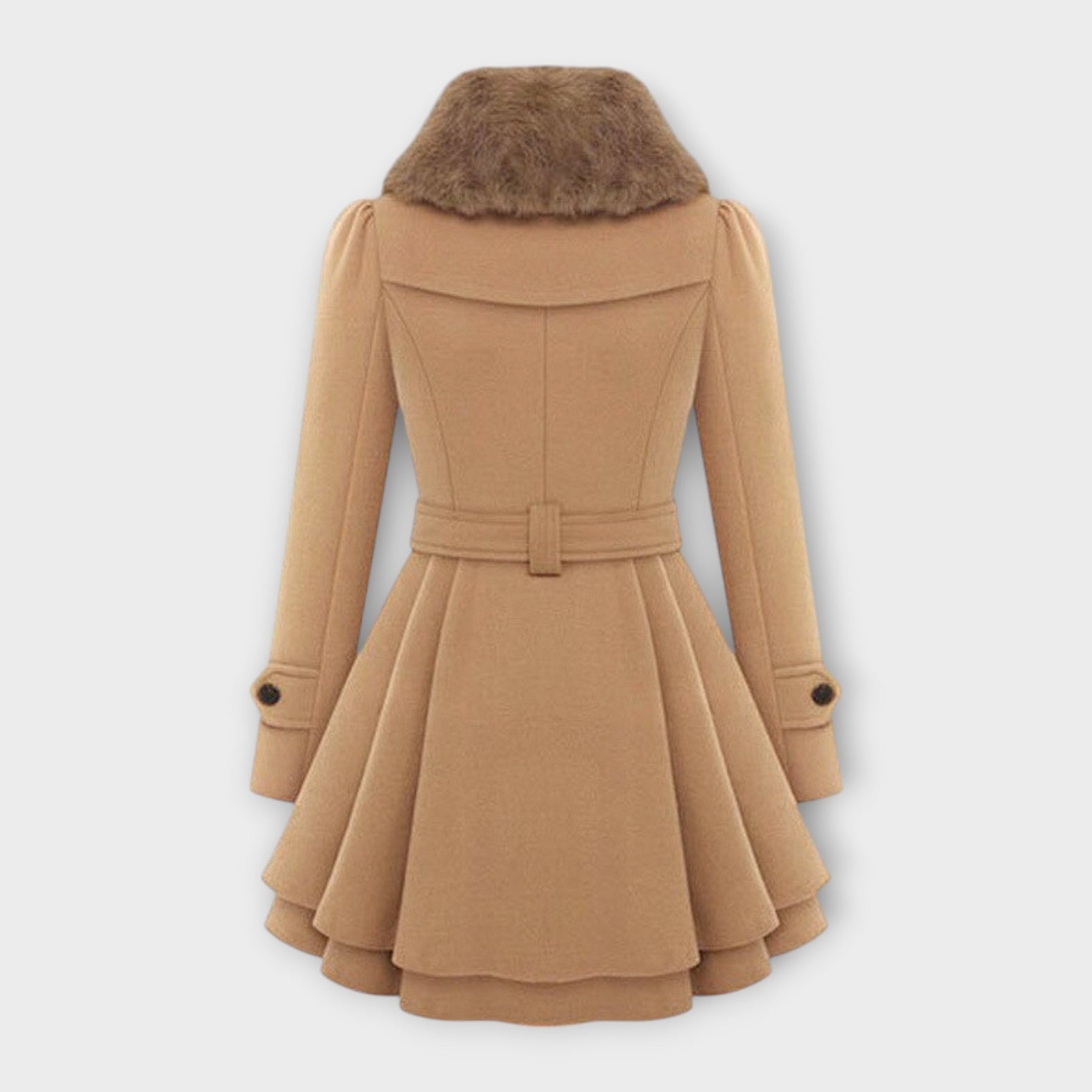 Elivara vereint feminine Raffinesse mit wärmender Geborgenheit. Der ausgestellte Schnitt verleiht der Silhouette eine anmutige Form, während der weiche Kragen den Mantel mit luxuriöser Eleganz abrundet. Ein Stück, das Stärke und Zartheit gleichermaßen ausstrahlt.