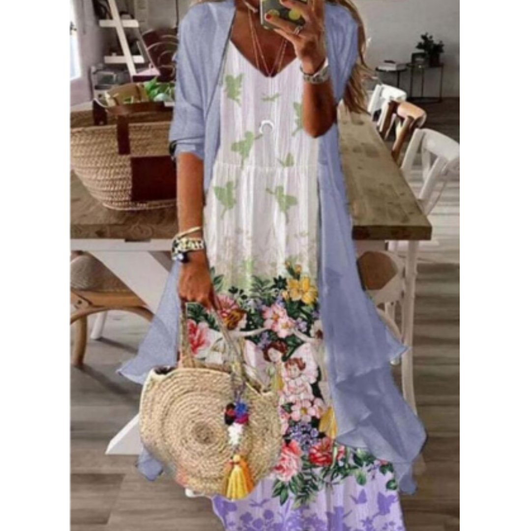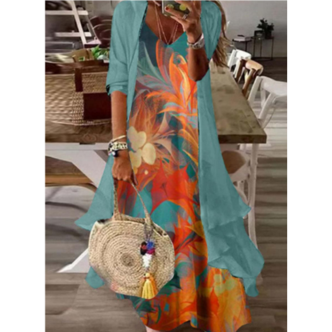 Das Elle Sun Kiss Midikleid verkörpert die Wärme des Sommers mit leuchtenden Farben und tropischen Motiven, ideal für Strandausflüge oder Spaziergänge. Das fließende orangefarbene Overlay sorgt für Komfort und schicken Stil, während pflegeleichte Materialien es zu einem vielseitigen Sommerkleid machen.