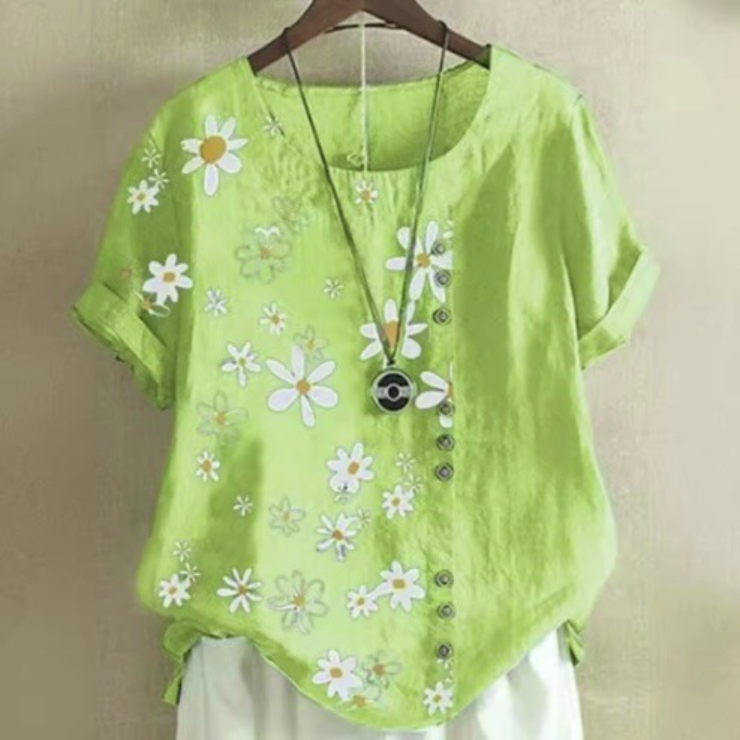 Entdecken Sie die elegante Damenbluse, ein Ein Muss für Ihre Garderobe, das Eleganz und Vielseitigkeit vereint. Diese Bluse eignet sich perfekt für jeden Anlass, vom Büroalltag bis zum Abend in der Stadt. Mit ihrem raffinierten Design und dem luxuriösen Stoff verleiht sie Ihrem Look einen Hauch von Raffinesse. Die Bluse Elsel ist Ihr Favorit für mühelos schicke Ensembles.
