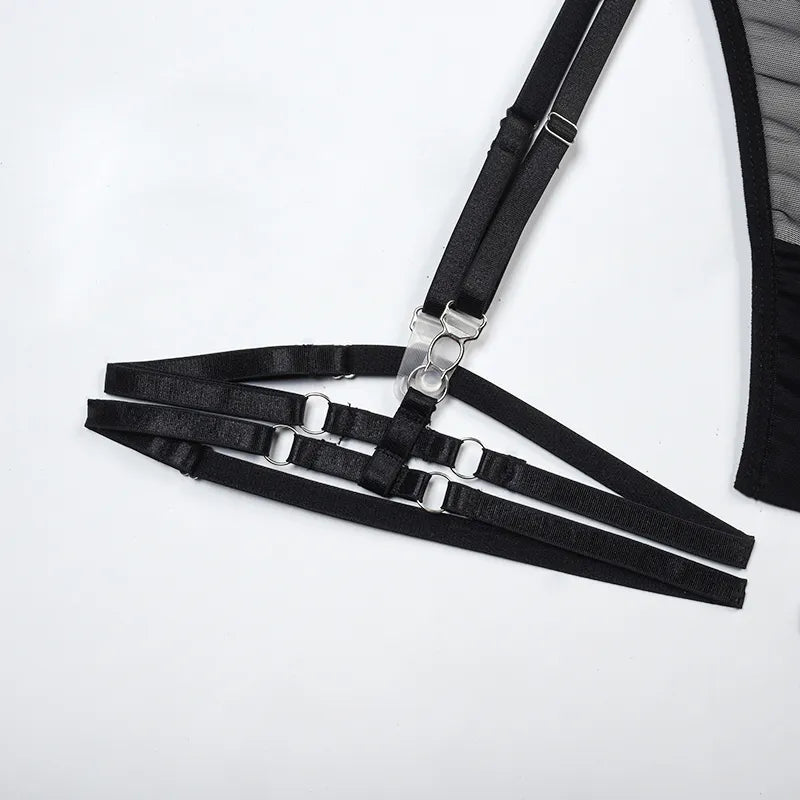 Der Estelle Body vereint klare Linien mit transparentem Mesh für einen sinnlichen, modernen Look. Vorgeformte Cups und Strapsgürtel-Details sorgen für die perfekte Balance zwischen Halt und Verführung. Ein Body, der deinem Selbstbewusstsein einen kraftvollen Schub verleiht.