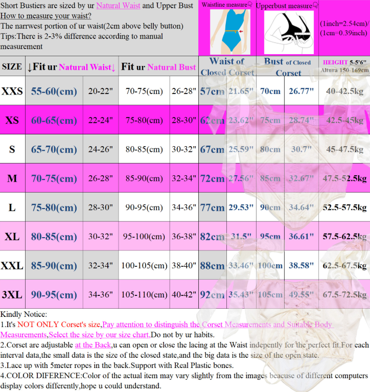 | Size | Bust | Waist |