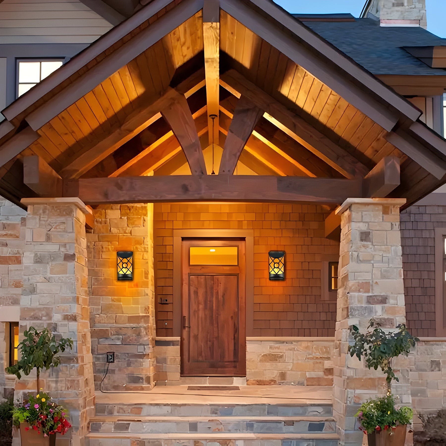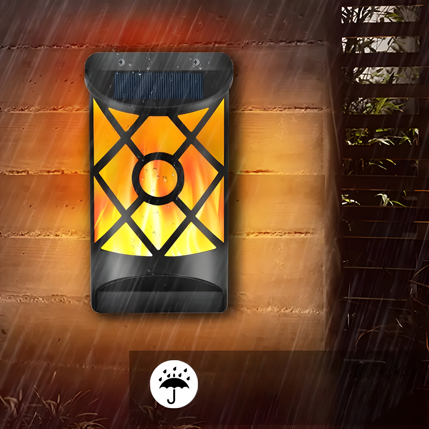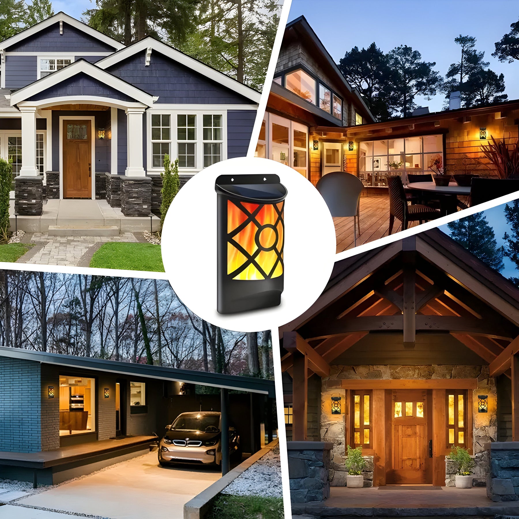 FlameGlow Lights - 2 Stück Außenleuchten Solarbetriebene Led-Wandleuchte