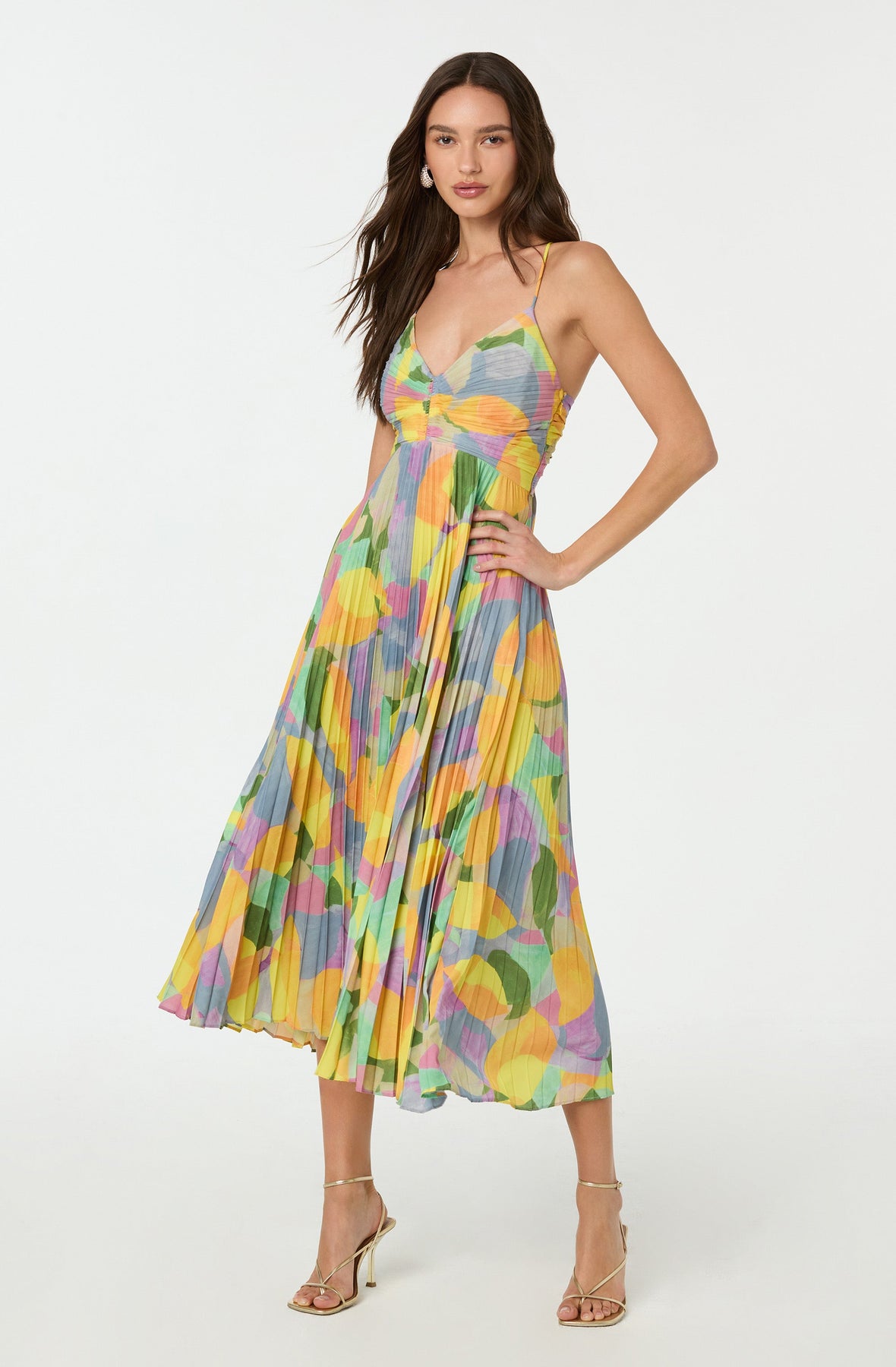 Das Florena-Kleid ist eine raffinierte Wahl für sonnige Tage und elegante Abende. Mit seinem tiefen V-Ausschnitt, der dezenten Plissee-Struktur und dem offenen Rücken mit zierlichen Trägern strahlt dieses Kleid pure Weiblichkeit aus. Der romantische Blumenprint und die verstellbaren Details machen es zu einem vielseitigen Must-have für die Saison.