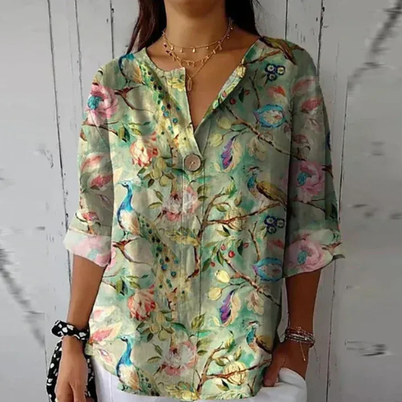 Diese geblümte Damenbluse bringt Farbe und Lebendigkeit in Ihren Look. Ihr harmonisches Muster sorgt für eine stilvolle Ausstrahlung im Alltag. Perfekt für alle, die mit wenig Aufwand modisch gekleidet sein möchten.