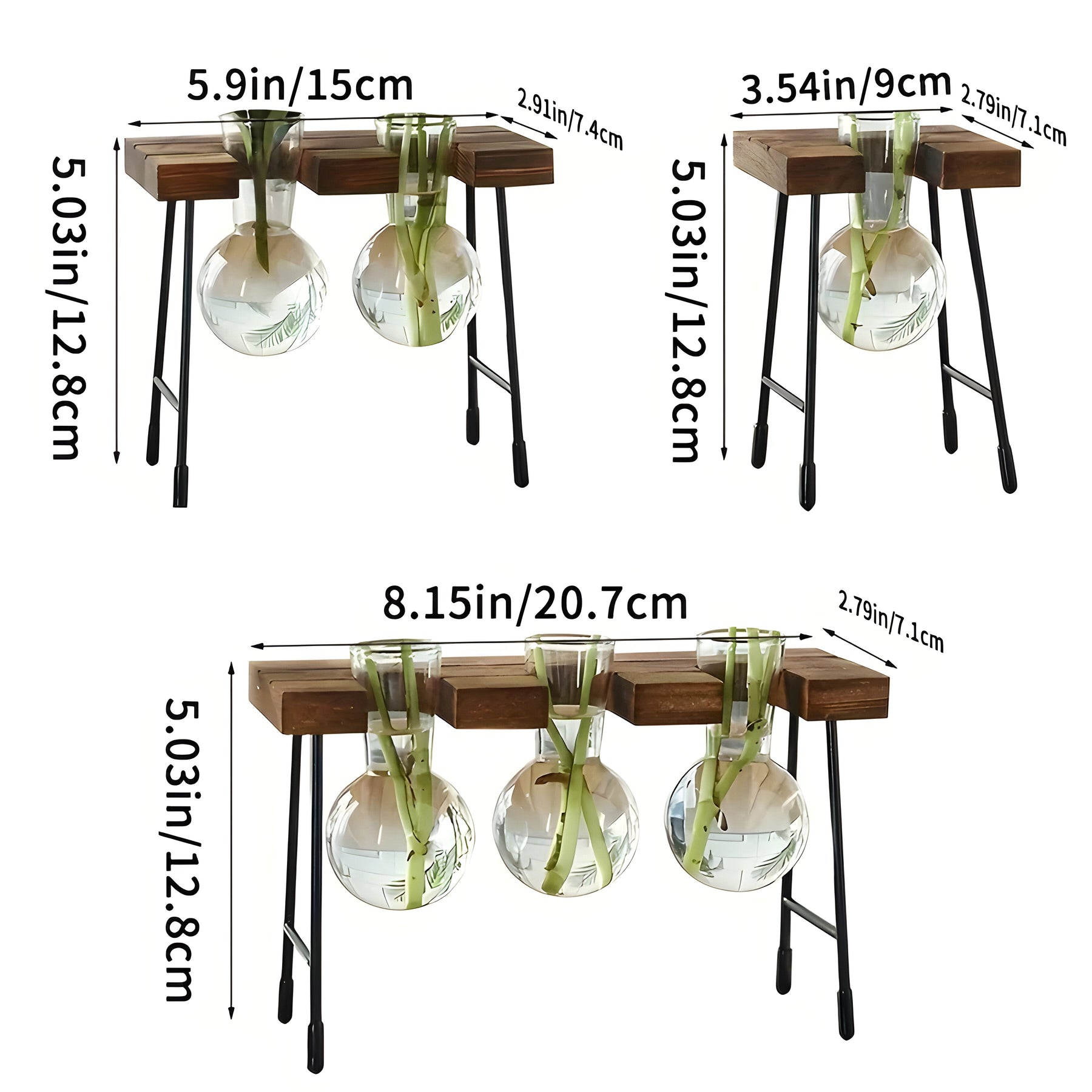 GlassRoot Vase - Hölzerner Rahmen Hydroponisches Pflanzgefäß mit Glaskugel