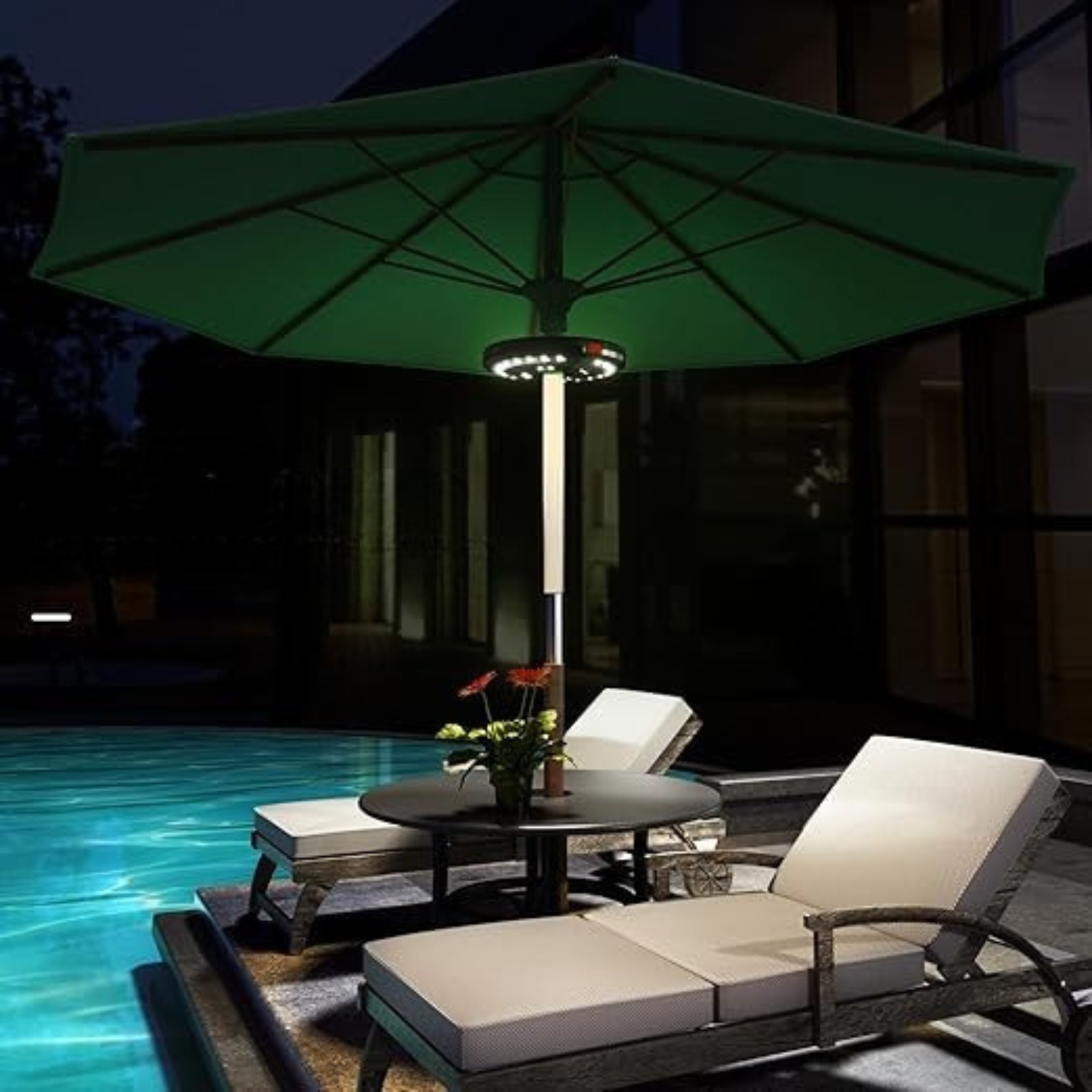 GlowShade Disc - Terrassen-Schirmleuchte mit 3 Helligkeitsmodi