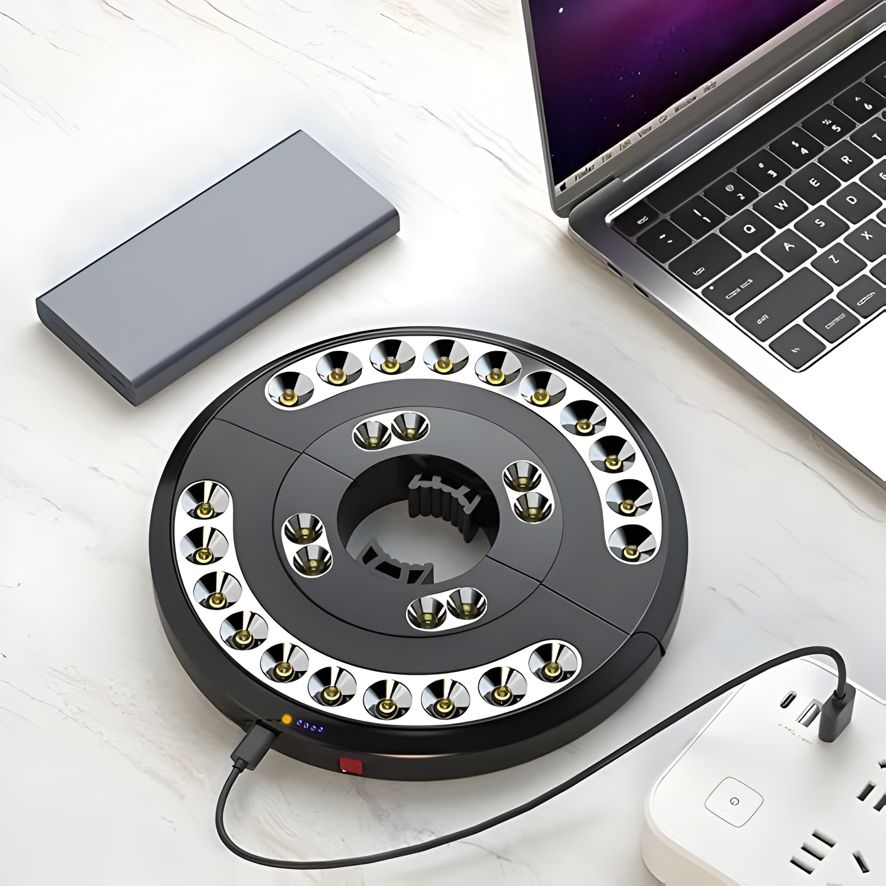 Mit der GlowShade Disc bringst du stimmungsvolles Licht unter deinen Sonnenschirm – ganz ohne Kabelsalat. Ob auf dem Balkon, der Terrasse oder beim Camping: Diese moderne Leuchte sorgt mit 3 Helligkeitsstufen immer für die passende Atmosphäre. Dank wiederaufladbarem Akku ist sie besonders flexibel einsetzbar – ganz einfach per USB aufzuladen. Und das Beste: Du brauchst weder Werkzeuge noch Kabel. Einfach anklemmen, anschalten, wohlfühlen!