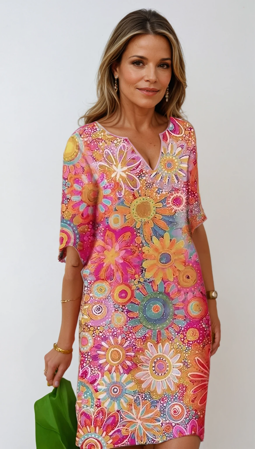 Werten Sie Ihre Garderobe mit Hannah auf, unserem beliebten Kleid mit V-Ausschnitt, das mit seinem bezaubernden Blumendruck zeitlose Eleganz ausstrahlt. Sein schmeichelhaftes Design betont Ihre Figur und sorgt dafür, dass Sie sich bei jedem Tragen sicher und stilvoll fühlen. Genießen Sie die Vielseitigkeit und den Komfort dieses Bestsellers, der sich für jeden Anlass eignet. Florale Eleganz, schmeichelhafter V-Ausschnitt, bequeme Passform, vielseitiger Stil.