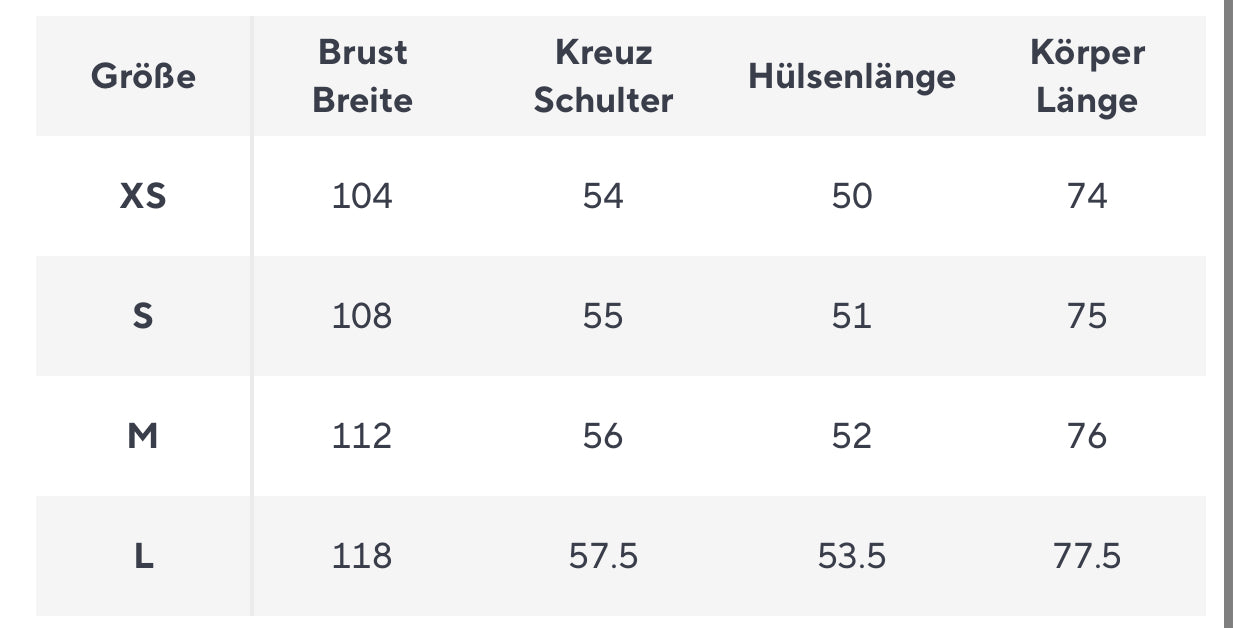 Größe Brust (cm) Taille (cm) Hüfte (cm)
