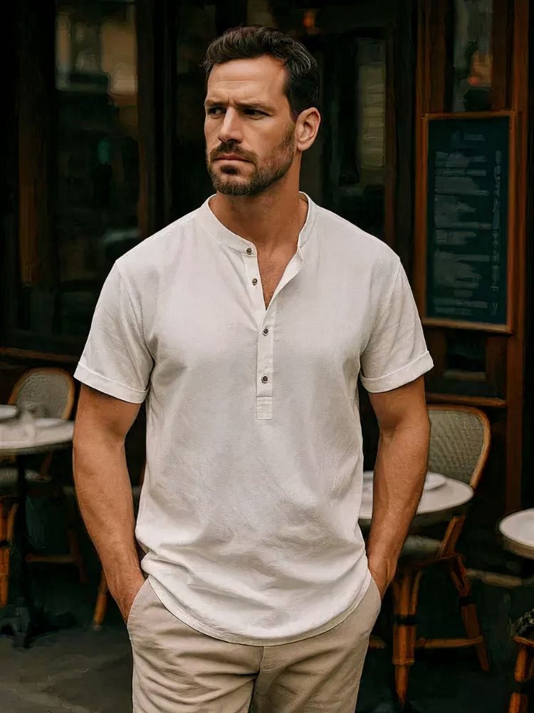 Das Herren bequemes Urlaubshemd sorgt für ein entspanntes Tragegefühl und einen lässigen Auftritt – genau richtig für warme Tage und entspannte Stunden. Ob am Strand, auf Reisen oder beim Stadtbummel, dieses Hemd verbindet Stil mit Leichtigkeit. Es bringt frischen Wind in deine Garderobe.