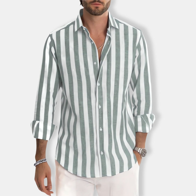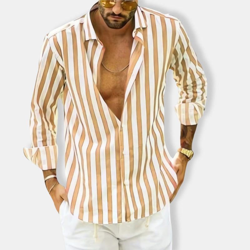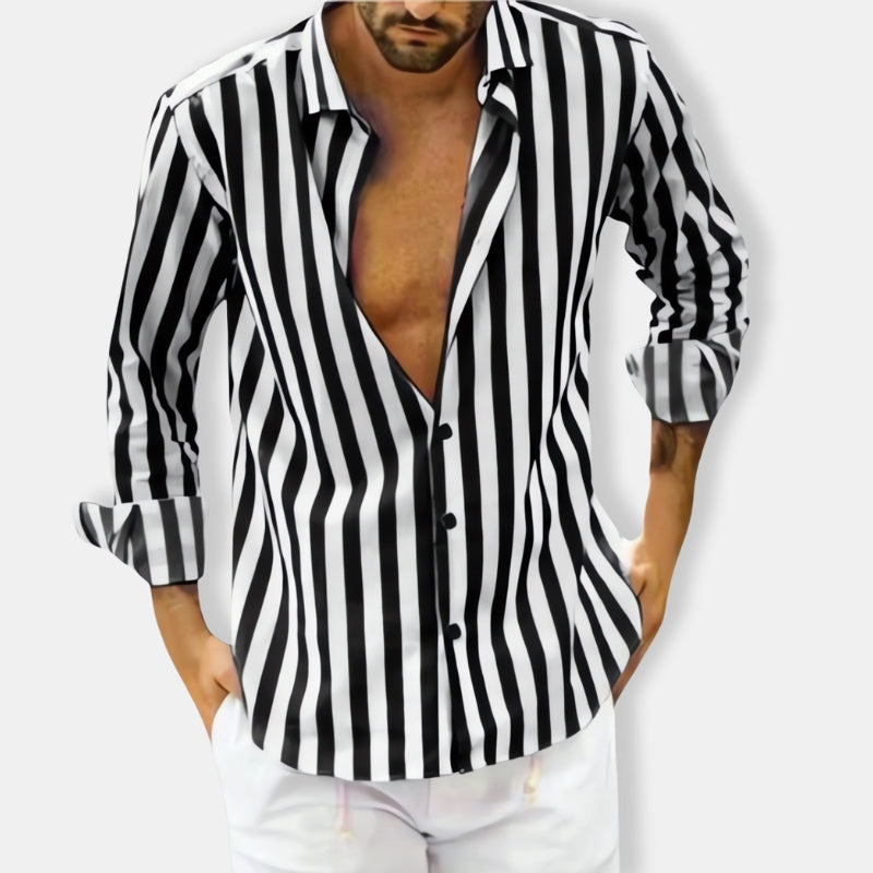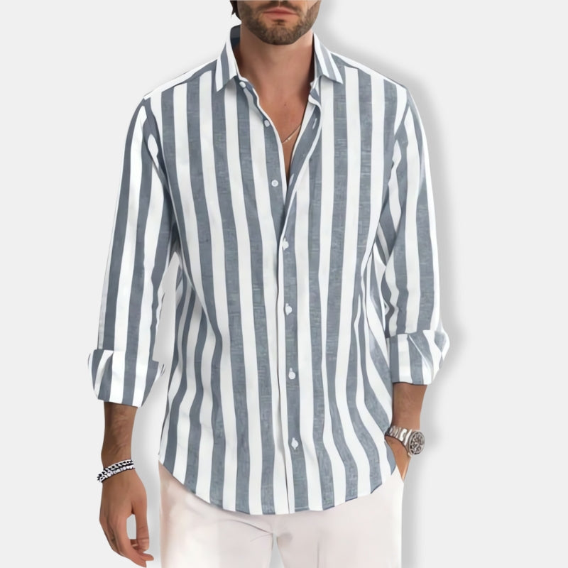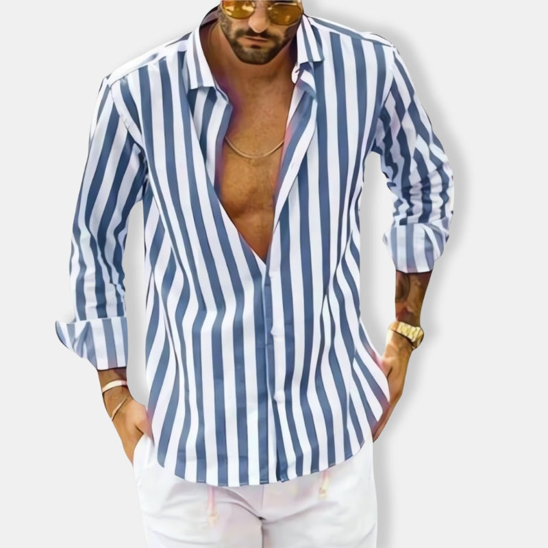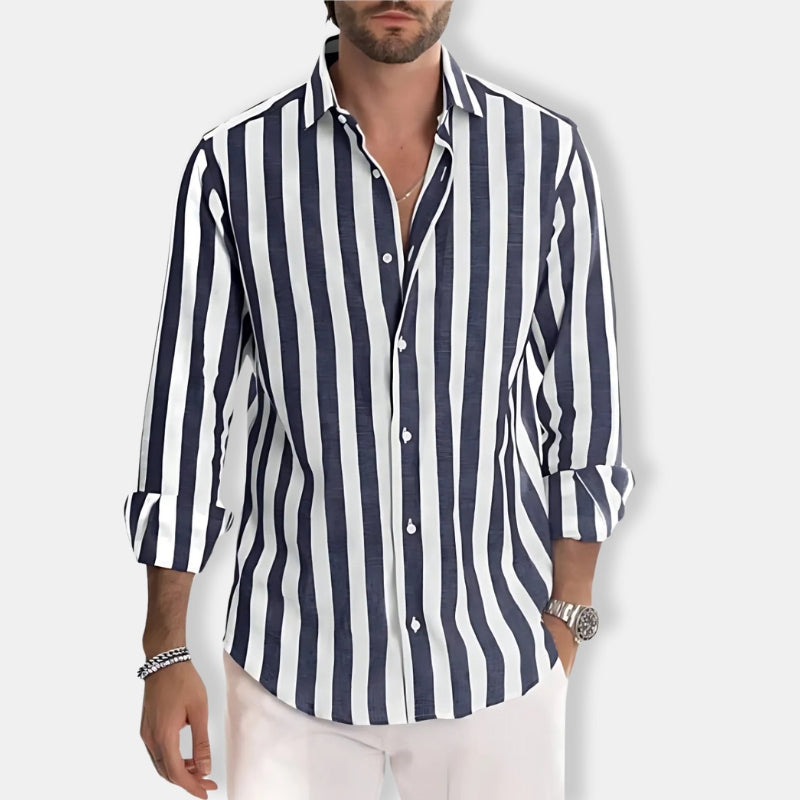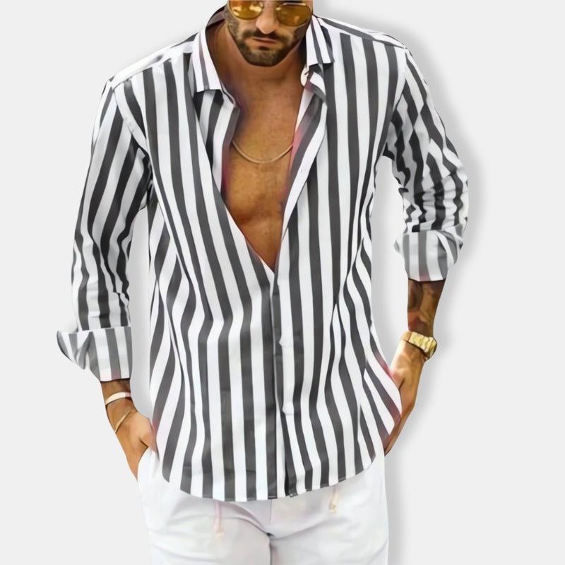 Ein gestreiftes Langarmhemd, das mühelos Eleganz mit Lässigkeit verbindet. Mit seiner zeitlosen Musterung und bequemen Passform ist es die perfekte Wahl für Büro, Freizeit oder besondere Anlässe. Der klassische Kragen und die durchgehende Knopfleiste verleihen dem Hemd eine stilvolle Note, während das weiche Material für ganztägigen Tragekomfort sorgt.