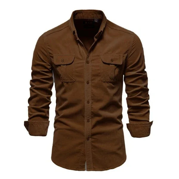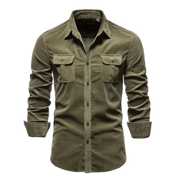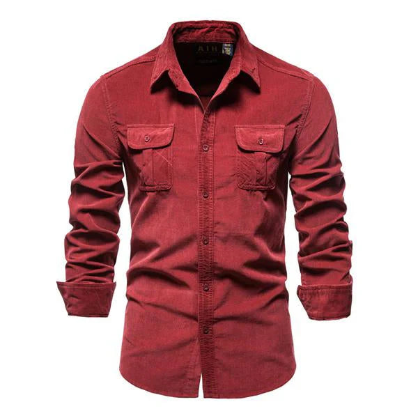 Herren Klassisch Cordhemd mit langen Ärmeln