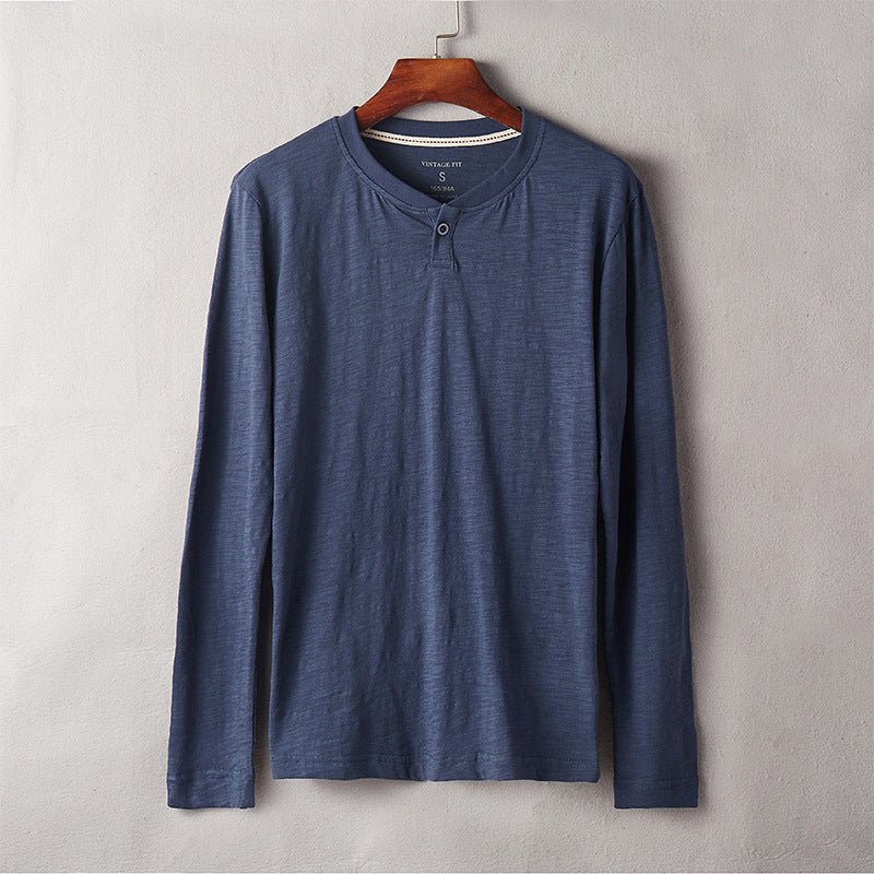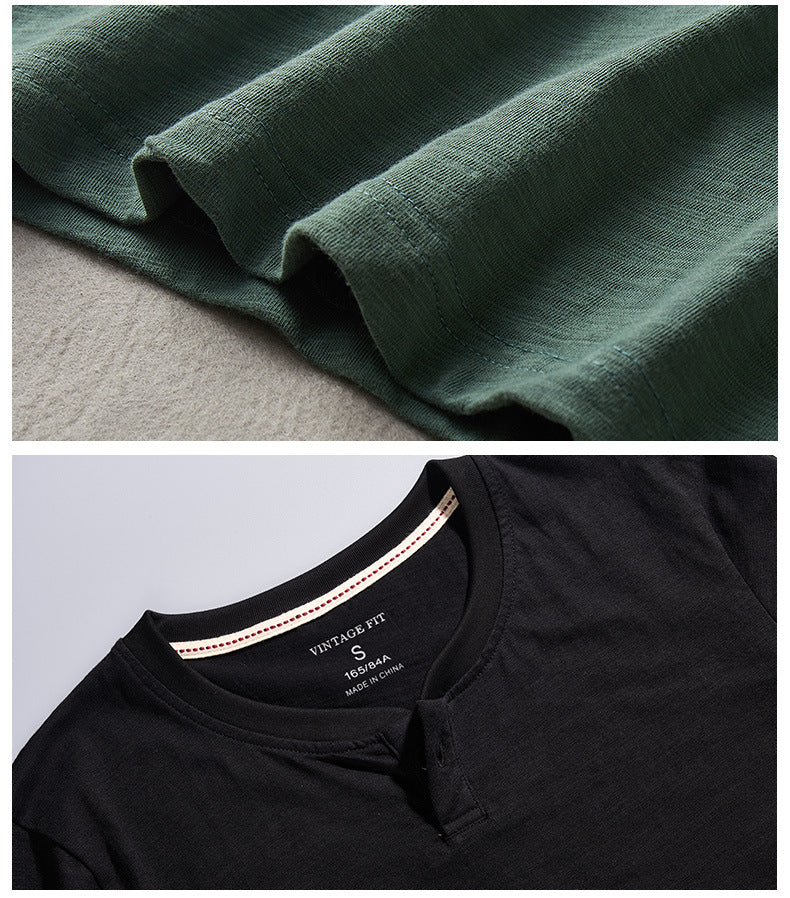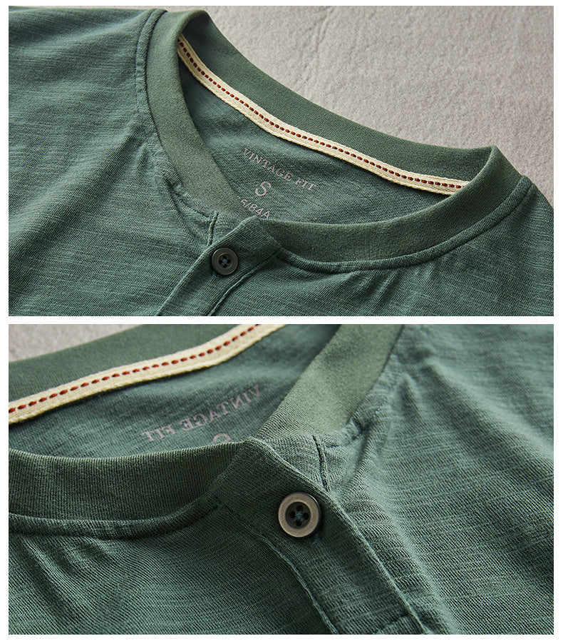 - Ausschnitt: Henley-Stil mit einem Knopf