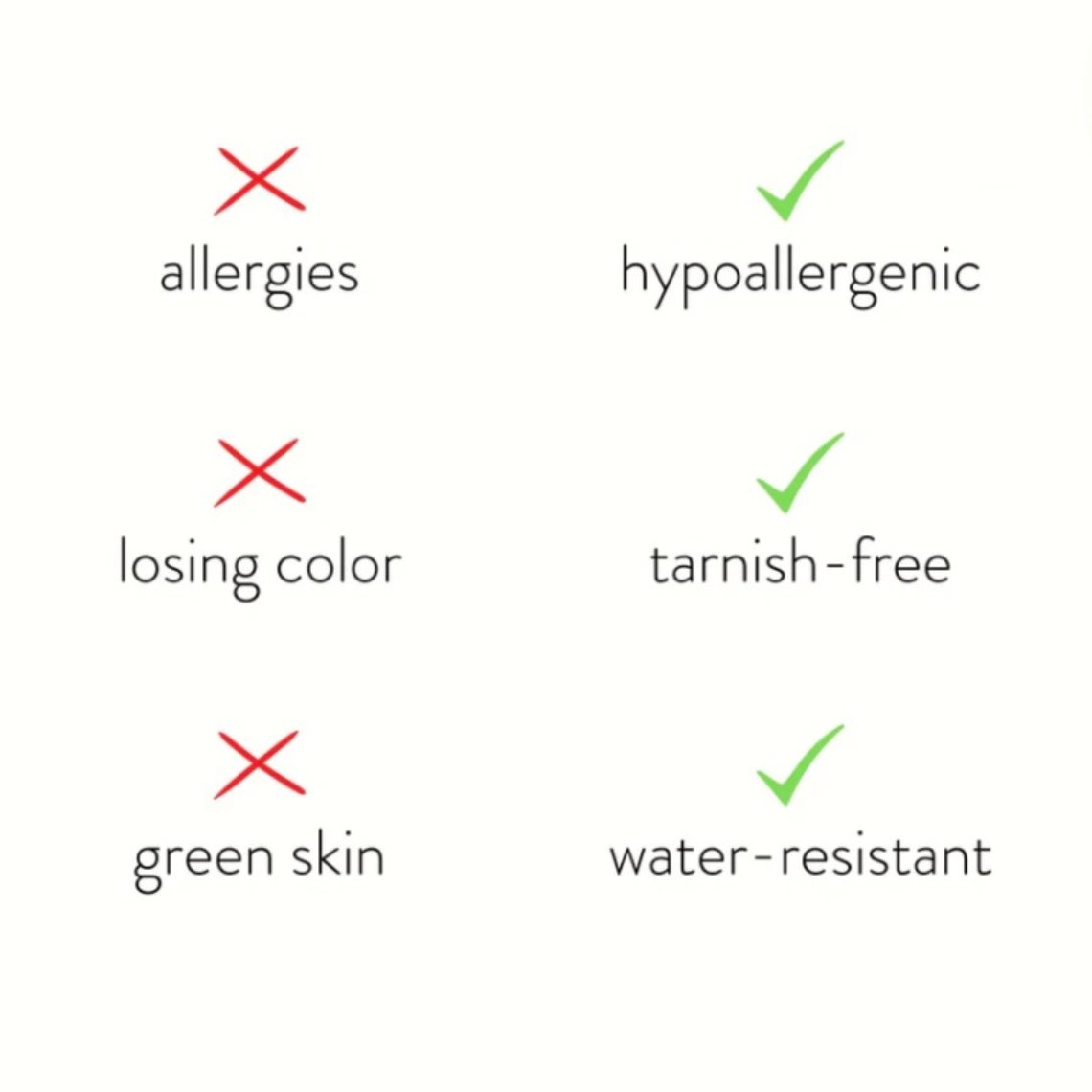Hergestellt aus wasserdichtem Edelstahl, müssen Sie sich nie wieder um grüne Finger, verblassenden oder anlaufenden Schmuck sorgen!