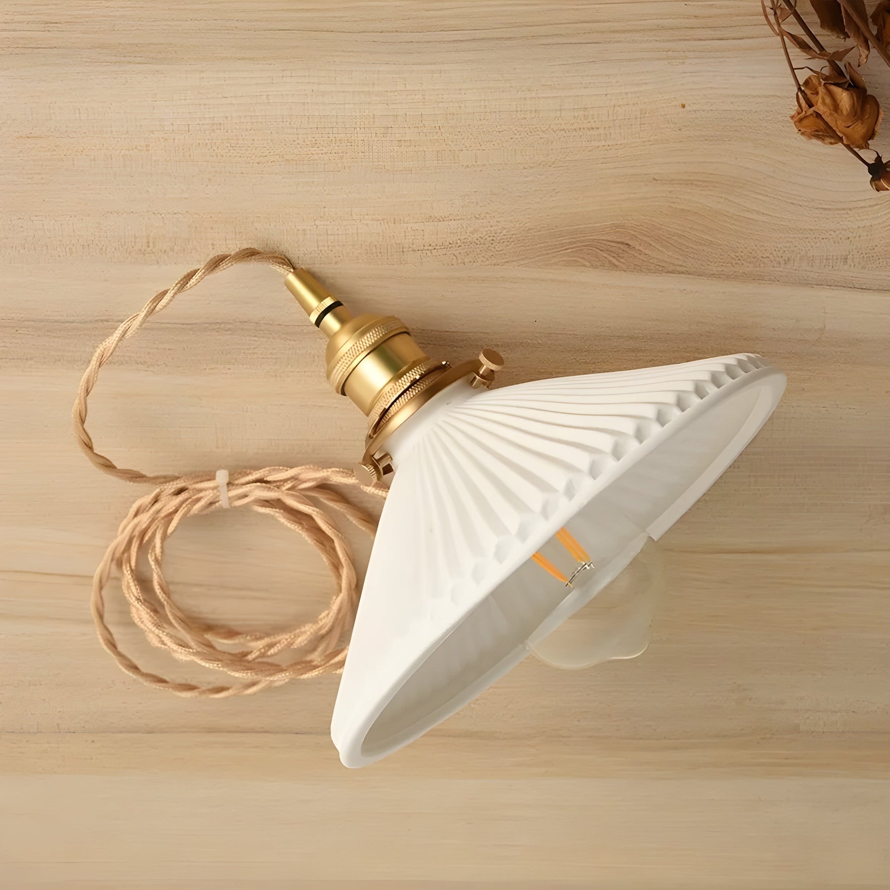 JapandiBeam Light - Japanischer Keramik-Pendelleuchte mit Rillenmuster