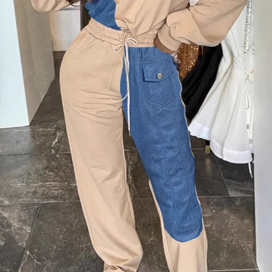 Das Jessamine 2-teilige Set vereint Komfort und Stil in einem modernen Design, das sowohl für entspannte Tage als auch für lässige Ausflüge perfekt geeignet ist. Hergestellt aus einer hochwertigen Mischung aus Polyester und Baumwolle, bietet dieses Set ein angenehm weiches Tragegefühl und eine vielseitige Ästhetik. Mit seinem Colorblock-Muster und raffinierten Details ist es die ideale Wahl für modebewusste Frauen, die auf Eleganz und Funktionalität Wert legen.