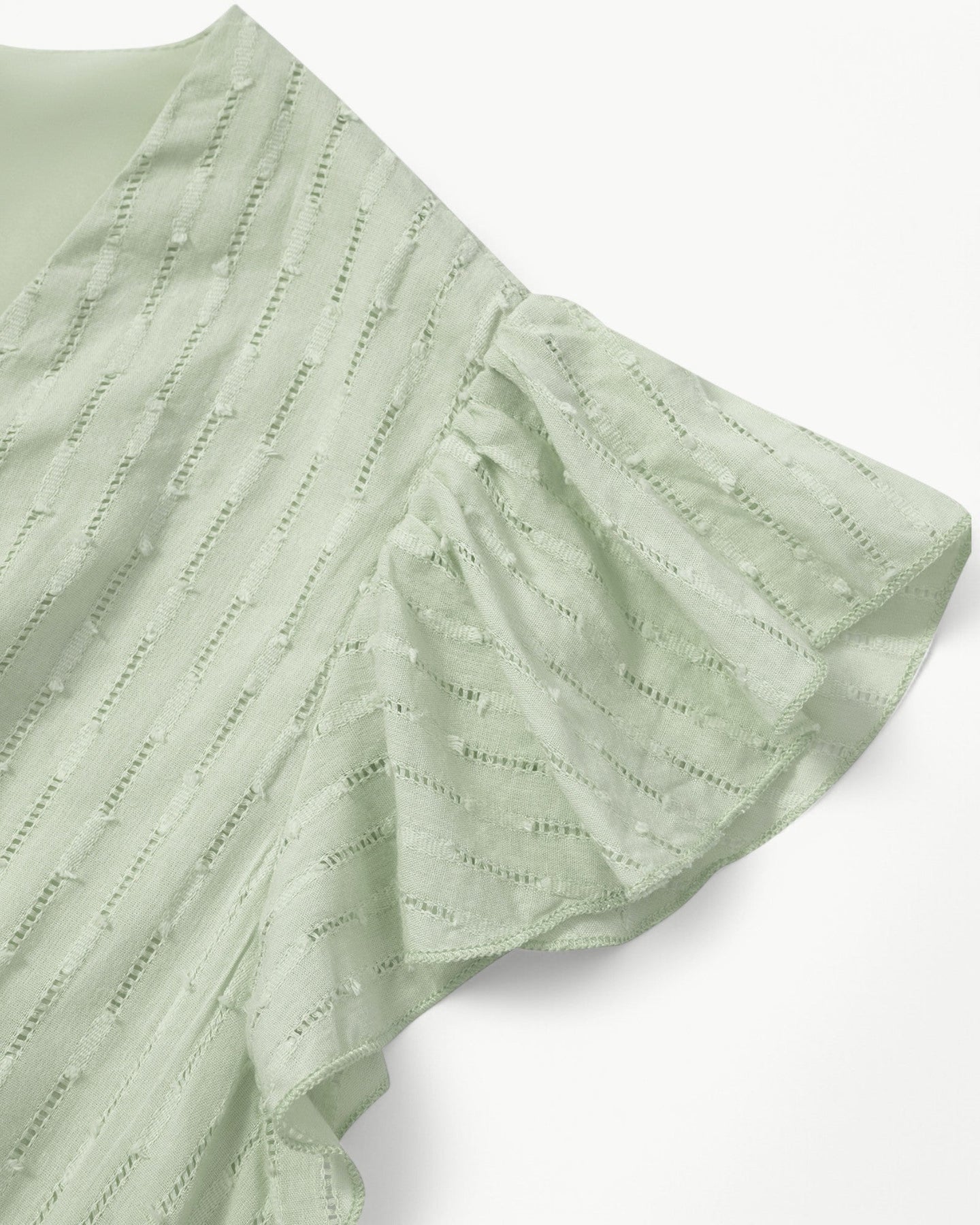 Zarte Rüschenärmel: Mit seinen weichen Rüschenärmeln verleiht dieses Kleid Ihrem Schau eine romantische und verspielte Hinweis. Die Ärmel sorgen für einen luftigen, femininen Flair, der die gesamte Silhouette unterstreicht, ohne sie zu überladen.