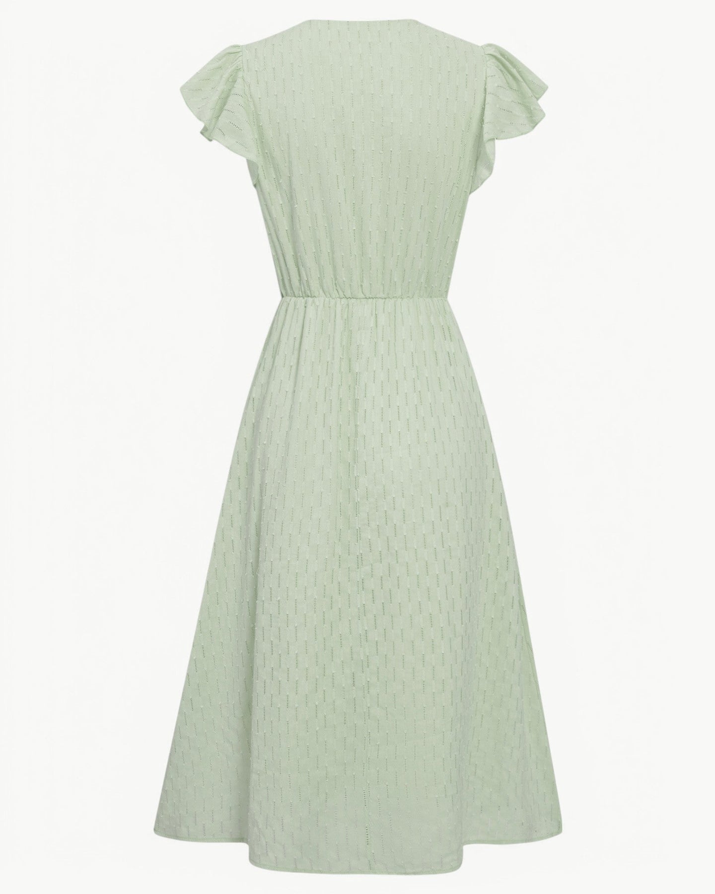 Mühelose Eleganz: Mit seiner Knopfleiste, dem V-Ausschnitt und der fließenden Form sorgt das Kleid für einen sofort eleganten Schau. Sie brauchen keine zusätzlichen Schichten oder aufwendigen Accessoires – einfach überziehen und mit müheloser Selbstsicherheit loslegen.