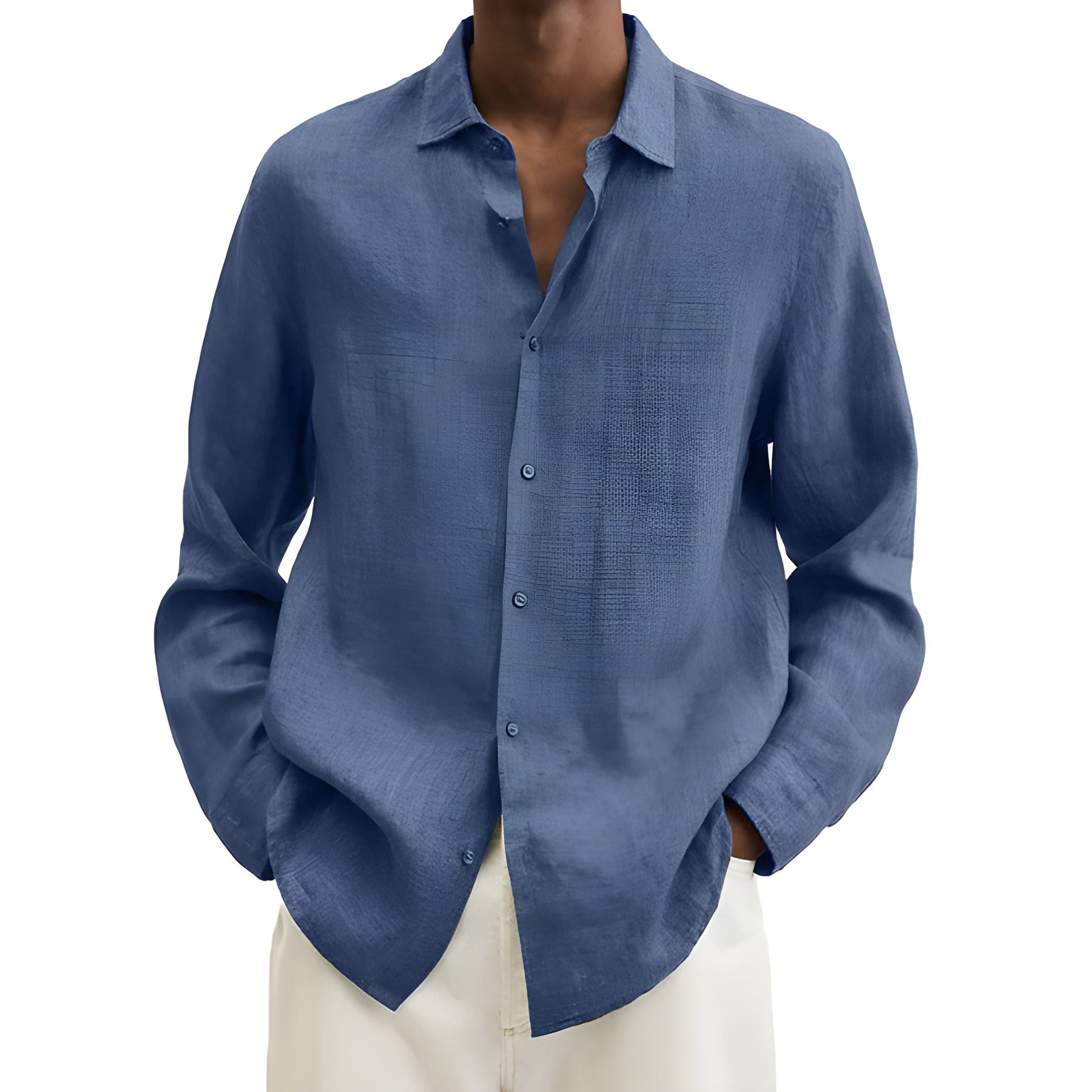 Holen Sie sich das Herren Meister Herren-Langarmhemd aus Baumwolle und Leinen und genießen Sie die perfekte Mischung aus Stil und Bequemlichkeit.