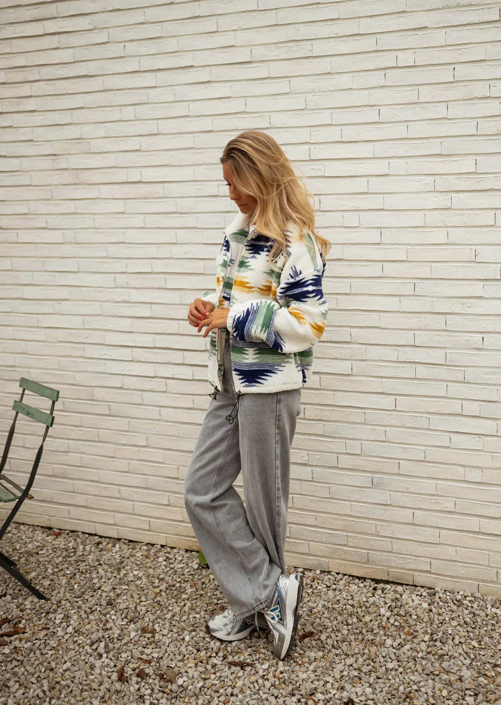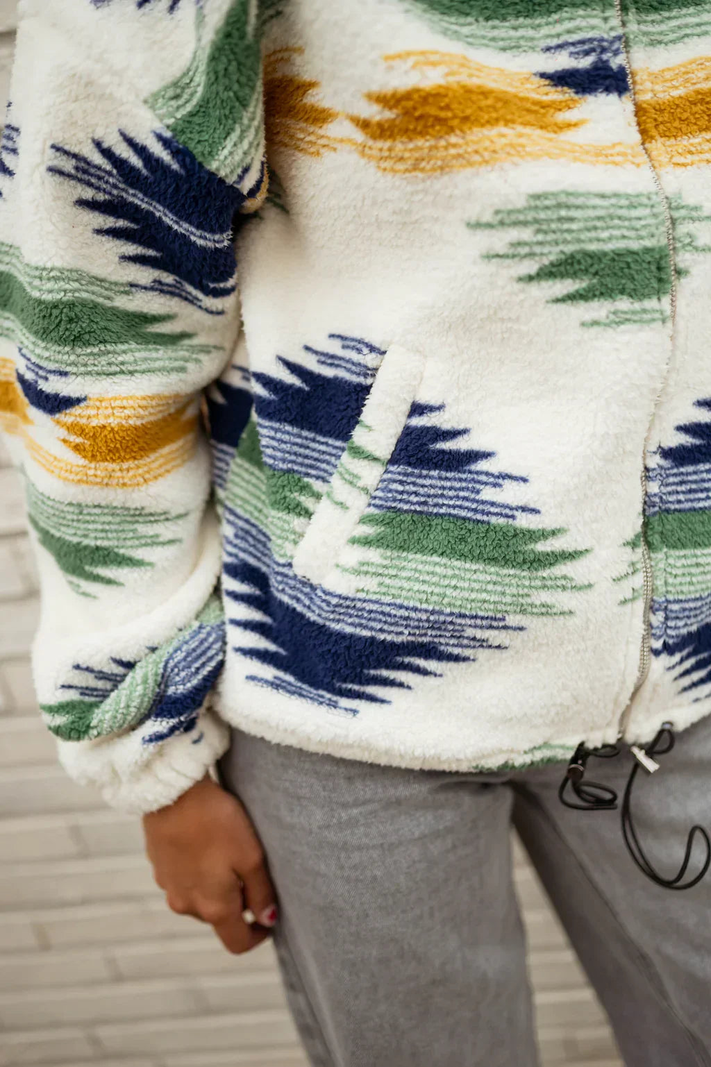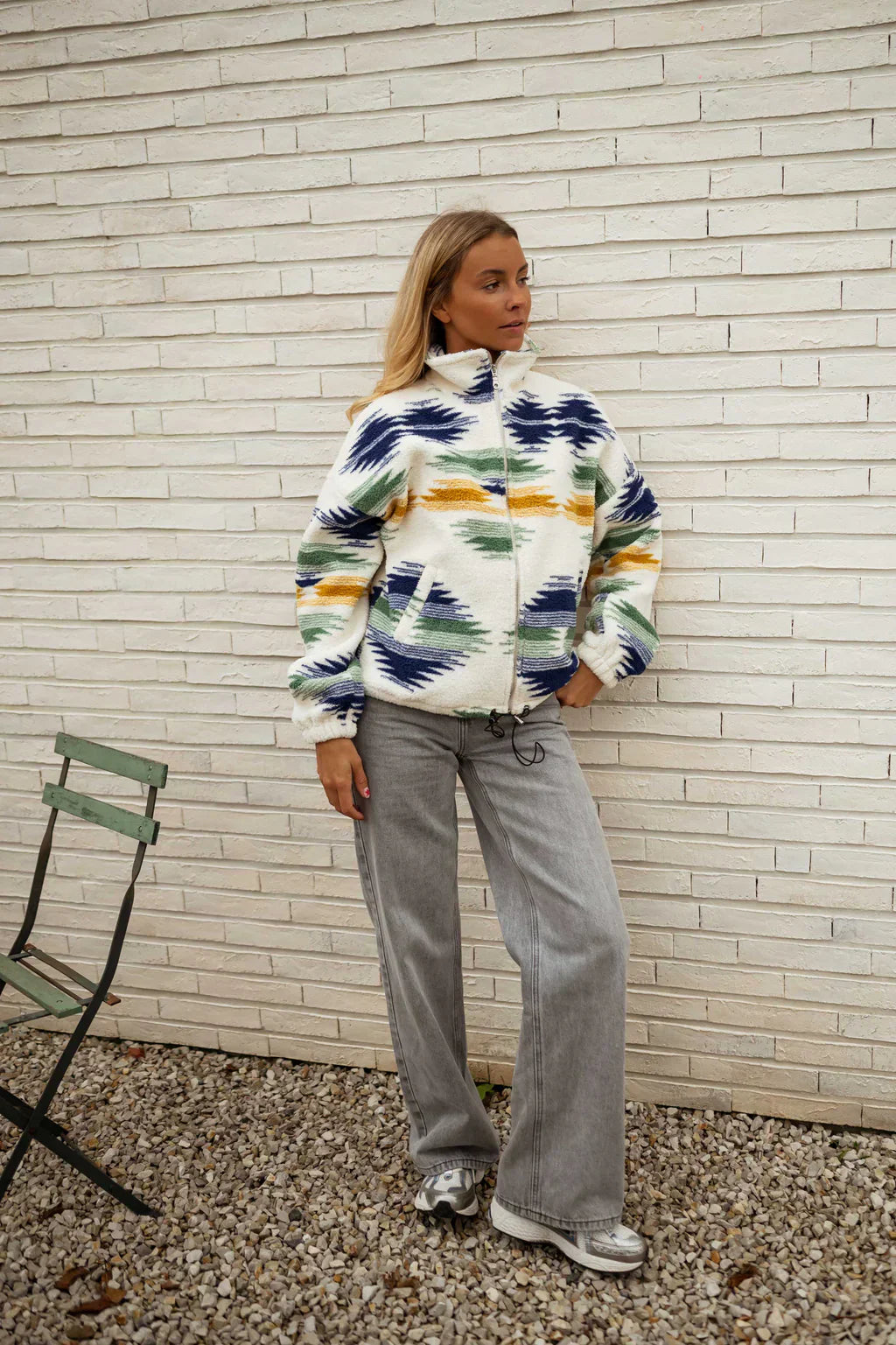 - Modernes Design: Das auffällige Muster und die durchdachte Schnittführung machen diese Jacke zu einem echten Hingucker, der sich mühelos mit verschiedenen Outfits kombinieren lässt.