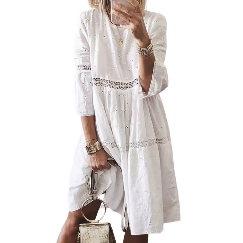 Dieses luftige, bequeme und dennoch stilvolle Kleid vereint alles, was du für einen frischen Sommer-Look benötigst. Egal, ob du am Strand entspannst oder durch die Stadt bummelst, dieses Kleid sorgt für einen mühelosen Auftritt.