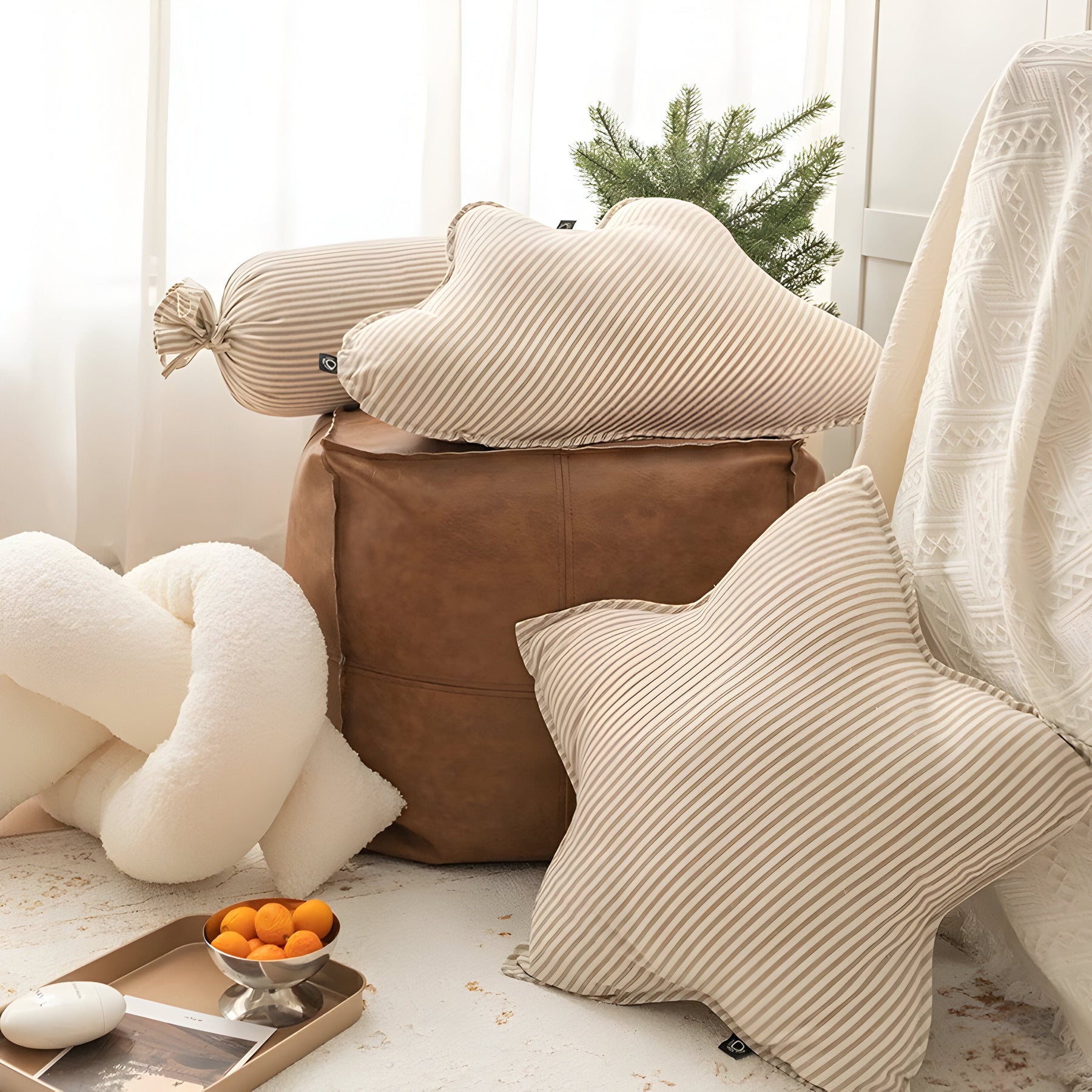 LunaPuff Kissen - Dekoratives Streifenkissen Soft Cushion